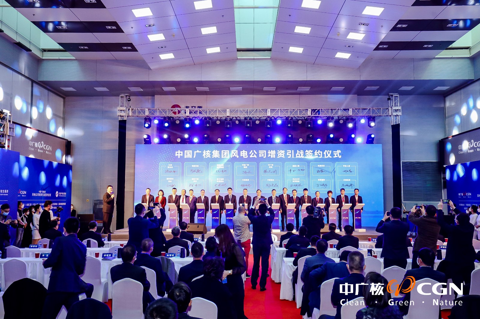 11月26日,中國(guó)廣核集團(tuán)風(fēng)電公司增資引戰(zhàn)簽約儀式在北京產(chǎn)權(quán)交易所舉行,川投集團(tuán)董事、副總經(jīng)理,川投能源監(jiān)事會(huì)主席鄭世紅,川投能源黨委書記、副董事長(zhǎng)、總經(jīng)理?xiàng)詈樽鳛閼?zhàn)略投資方代表,與其它來自各行各業(yè)的代表一道,出席了簽約儀式。