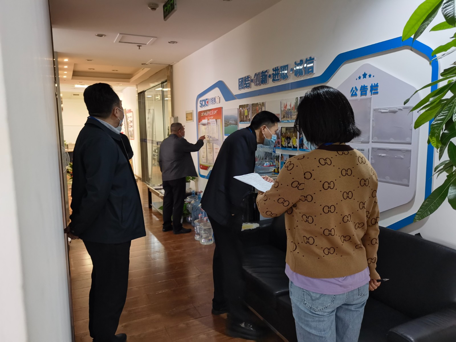 冉蘭平一行首先檢查了兩家所屬企業的入口、辦公區域、公共區域等關鍵點位的防控工作,然后檢查了疫情防控工作臺賬、人員健康報告與出行登記臺賬、疫苗接種臺賬、防疫物資出入庫臺賬、宣傳教育及信息報送情況,查閱了公司疫情防控應急預案、工作方案、專題會紀要等,并隨機抽問員工是否了解上級單位的疫情防控相關文件和會議精神,是否貫徹落實防控要求和個人防護措施。