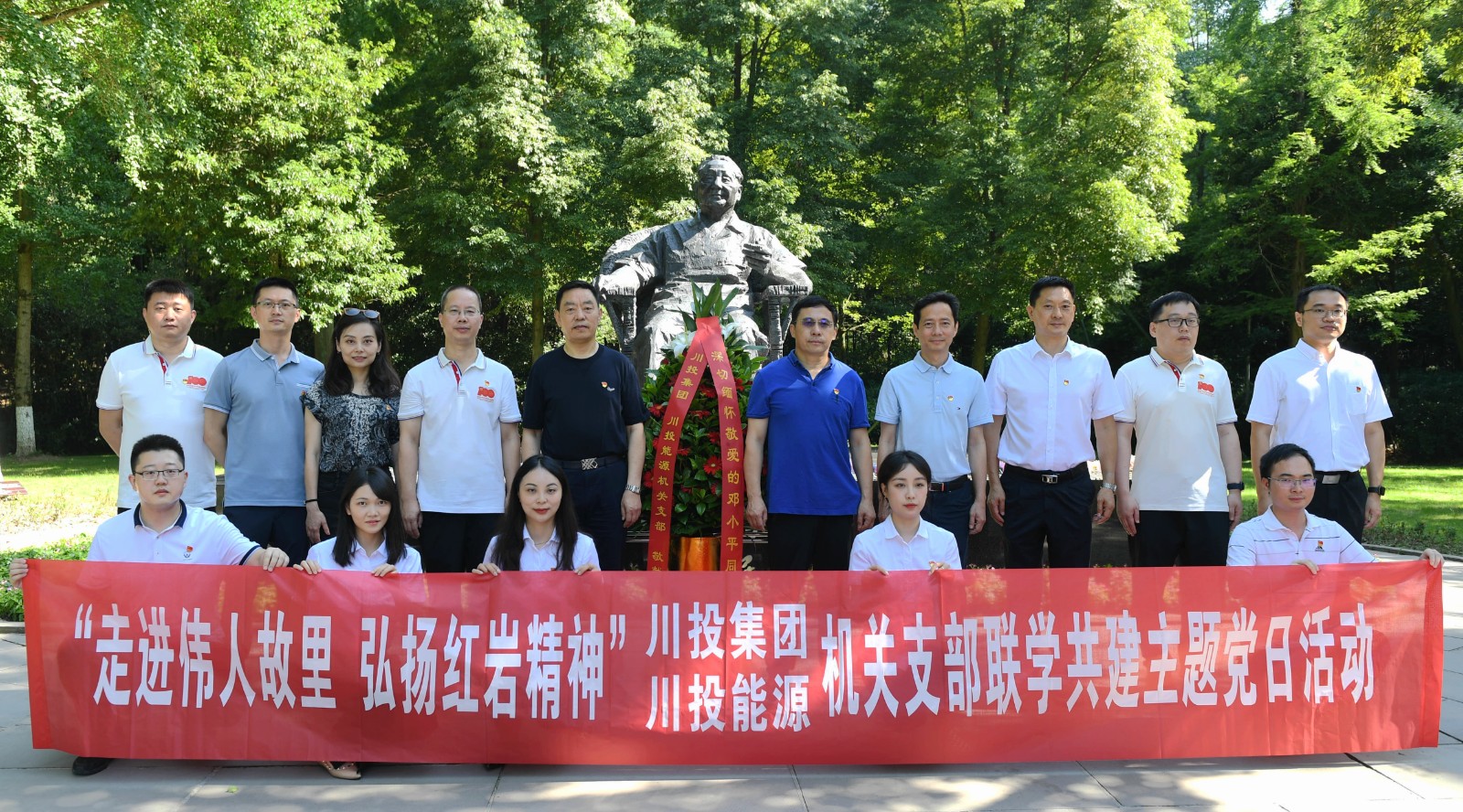 在建黨101周年之際,7月7日至8日,川投集團(tuán)、川投能源機(jī)關(guān)支部赴廣安市開(kāi)展“走進(jìn)偉人故里,弘揚(yáng)紅巖精神”聯(lián)學(xué)共建主題黨日活動(dòng),緬懷偉人豐功偉績(jī),弘揚(yáng)先輩奮斗精神,繼承紅色優(yōu)良傳統(tǒng)。集團(tuán)公司黨委副書記、董事鄧凱,黨委委員、副總經(jīng)理王懷林,副總經(jīng)理張昊參加活動(dòng)。
