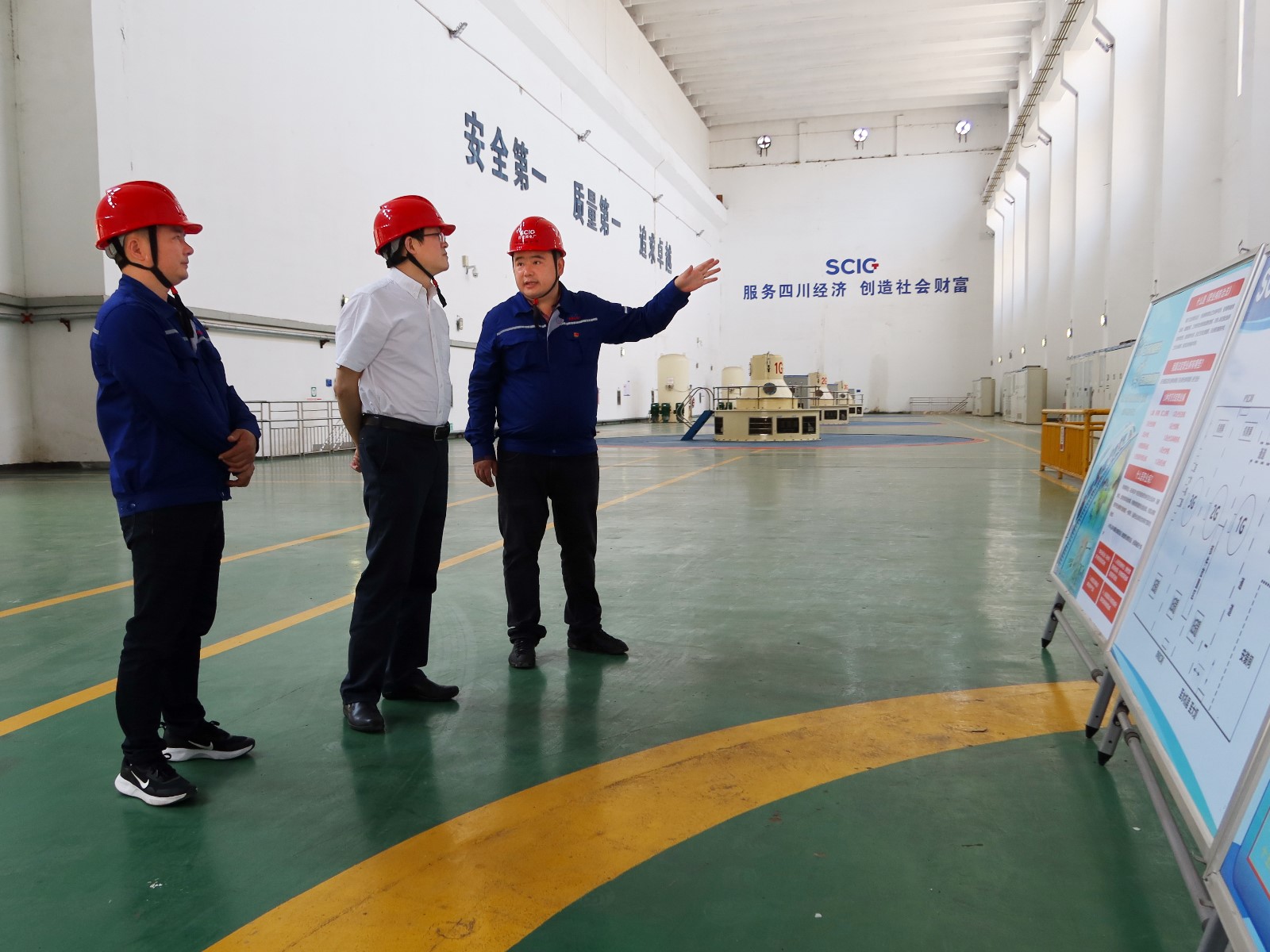 楊洪一行來到發電廠房,檢查機組運行狀態和隱患排查治理情況,查看《職業病防治法》宣傳周開展情況。向一線干部員工致以“五一”勞動節祝愿。
