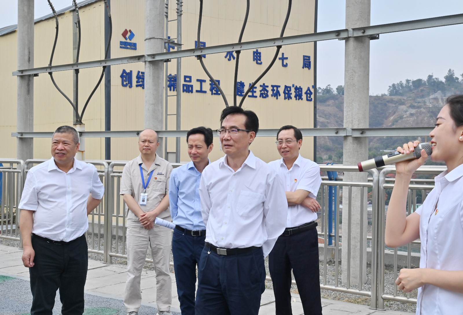 吳曉曦一行先后來到銀江水電站施工變電站觀景平臺、上游圍堰詳細(xì)了解項(xiàng)目整體規(guī)劃、建設(shè)意義、工期計(jì)劃、目前施工進(jìn)度、安全環(huán)保及防洪度汛等情況。