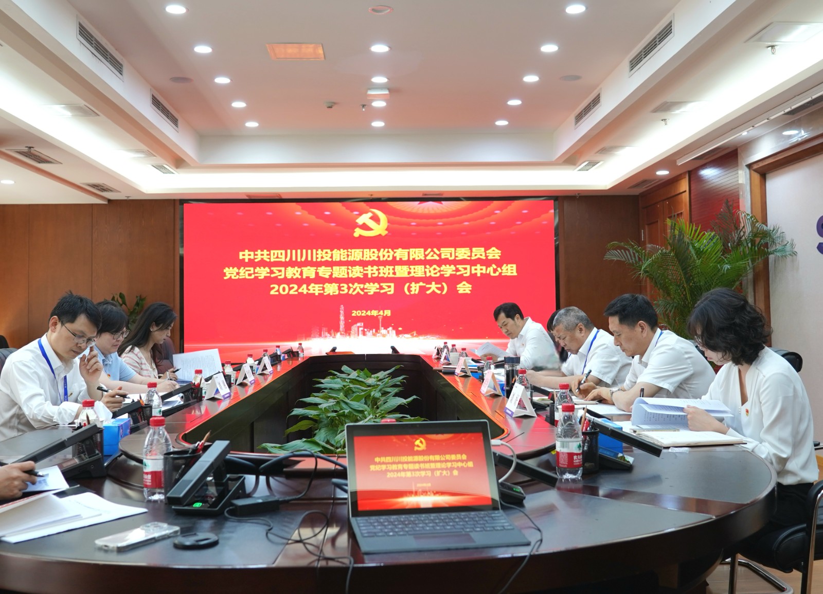4月26日,川投能源黨委黨紀(jì)學(xué)習(xí)教育專(zhuān)題讀書(shū)班結(jié)業(yè)式暨理論學(xué)習(xí)中心組2024年第3次學(xué)習(xí)(擴(kuò)大)會(huì)召開(kāi)。公司黨委書(shū)記、副董事長(zhǎng)、總經(jīng)理?xiàng)詈橹鞒謺?huì)議并講話。