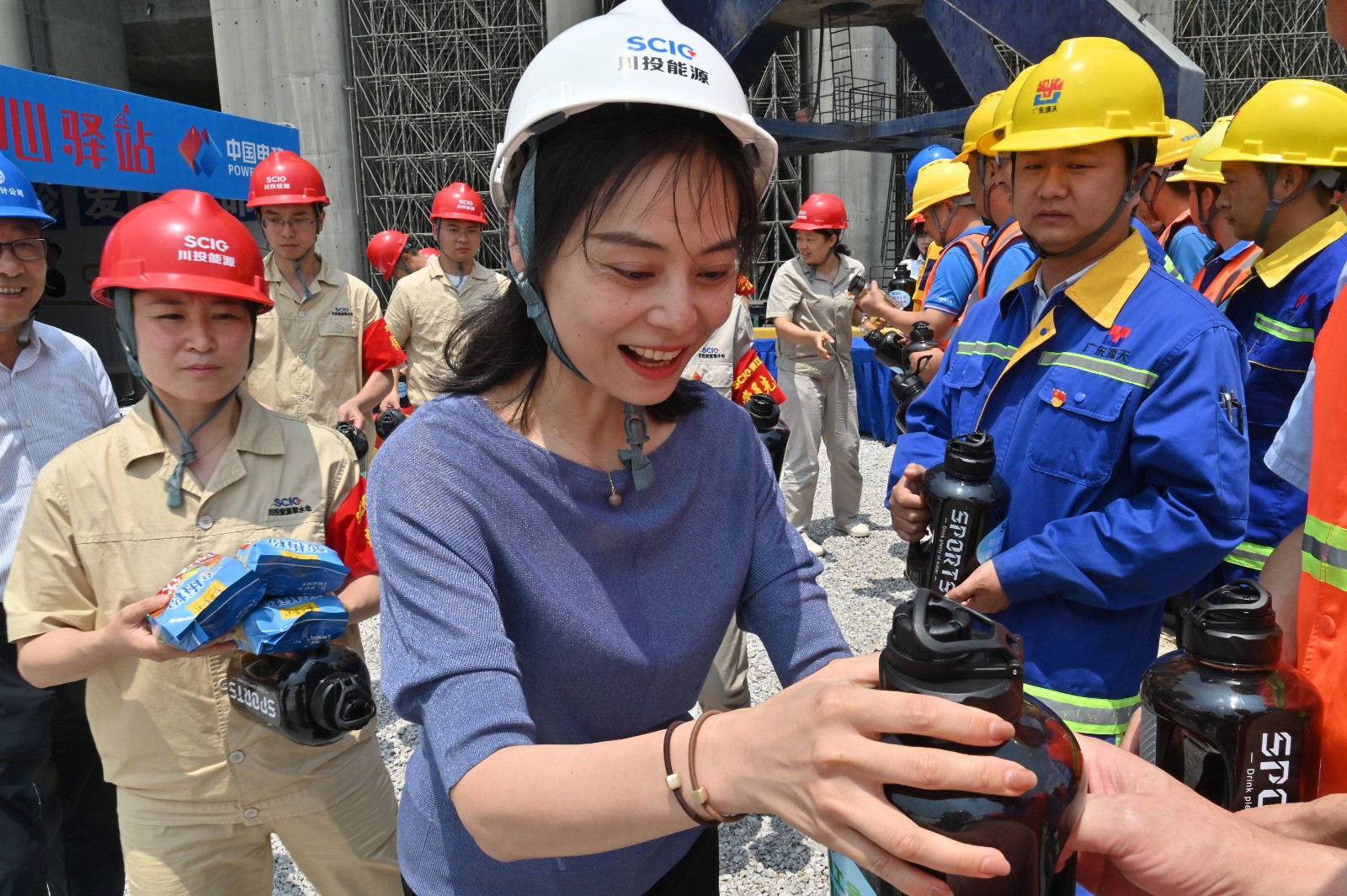 當(dāng)日下午,朱莉一行對(duì)銀江水電站上游圍堰、基坑廠房壩段等防汛防災(zāi)重點(diǎn)領(lǐng)域進(jìn)行了現(xiàn)場(chǎng)檢查,聽取工程建設(shè)情況,并為銀江水電站工地“愛心驛站”進(jìn)行揭牌,為一線建設(shè)者們送上夏季清涼物品和誠(chéng)摯問候。