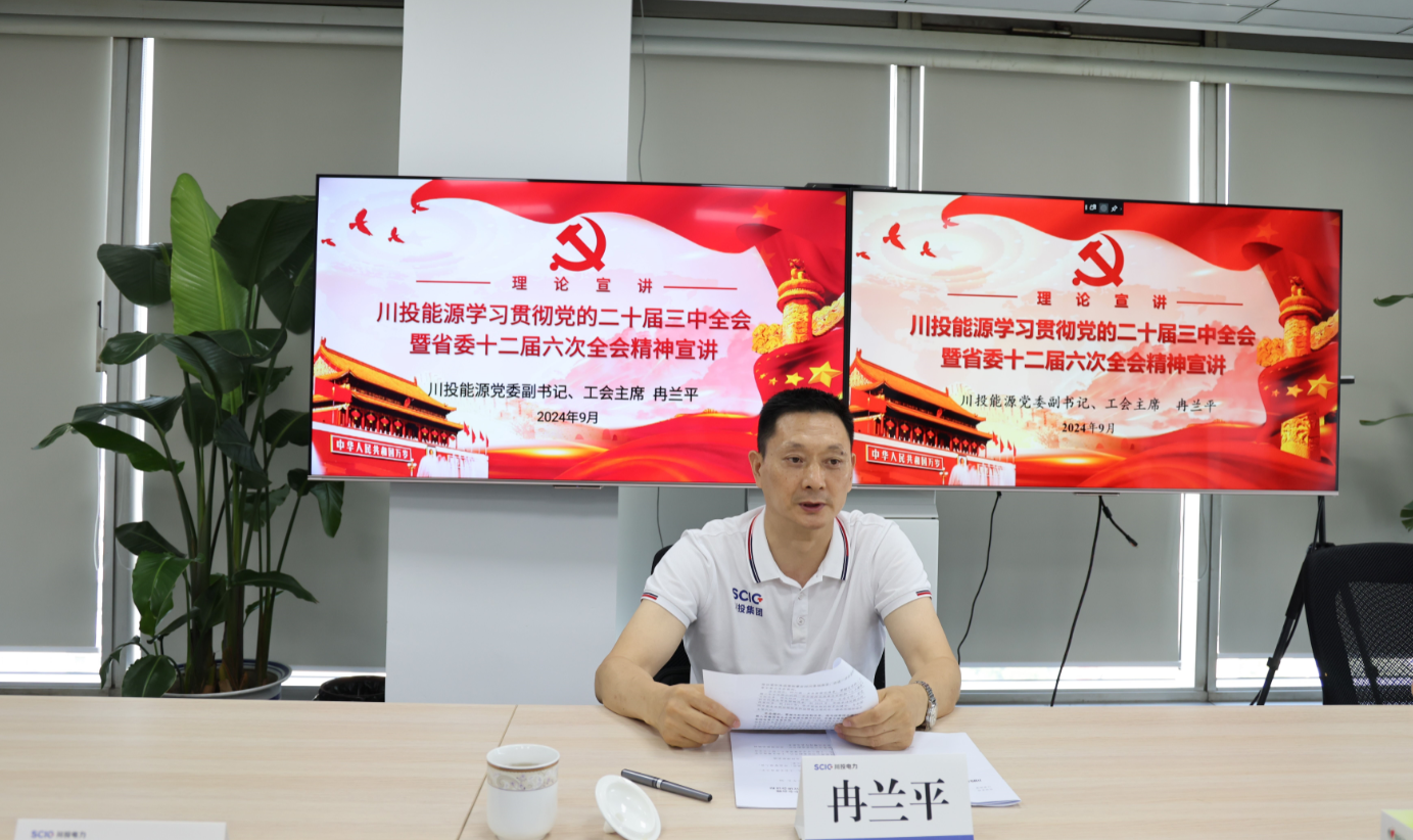 9月26日,川投能源黨委副書記、工會主席冉蘭平赴川投電力公司專題宣講黨的二十屆三中全會精神和省委十二屆六次全會精神,為進一步全面深化改革凝心聚力。川投電力黨委副書記、總經理蔡承德主持會議。