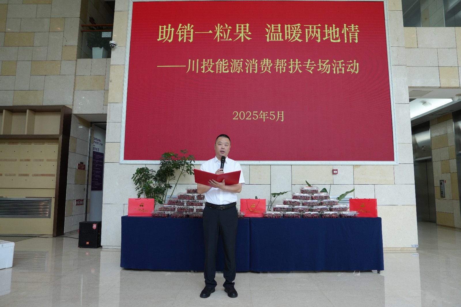 楊洪代表川投能源向參加活動的儀隴縣、馬鞍鎮、福臨鄉一行人員表達感謝和歡迎,他表示,今天的活動不僅是為滯銷車厘子“找出路”,更是為鄉村振興“拓新路”,川投能源將以本次活動為起點,一如既往做好托底性幫扶工作,強化黨建引領,統籌要素保障,加強全面對接,讓幫扶從“一時解困”走向“長期共贏”。