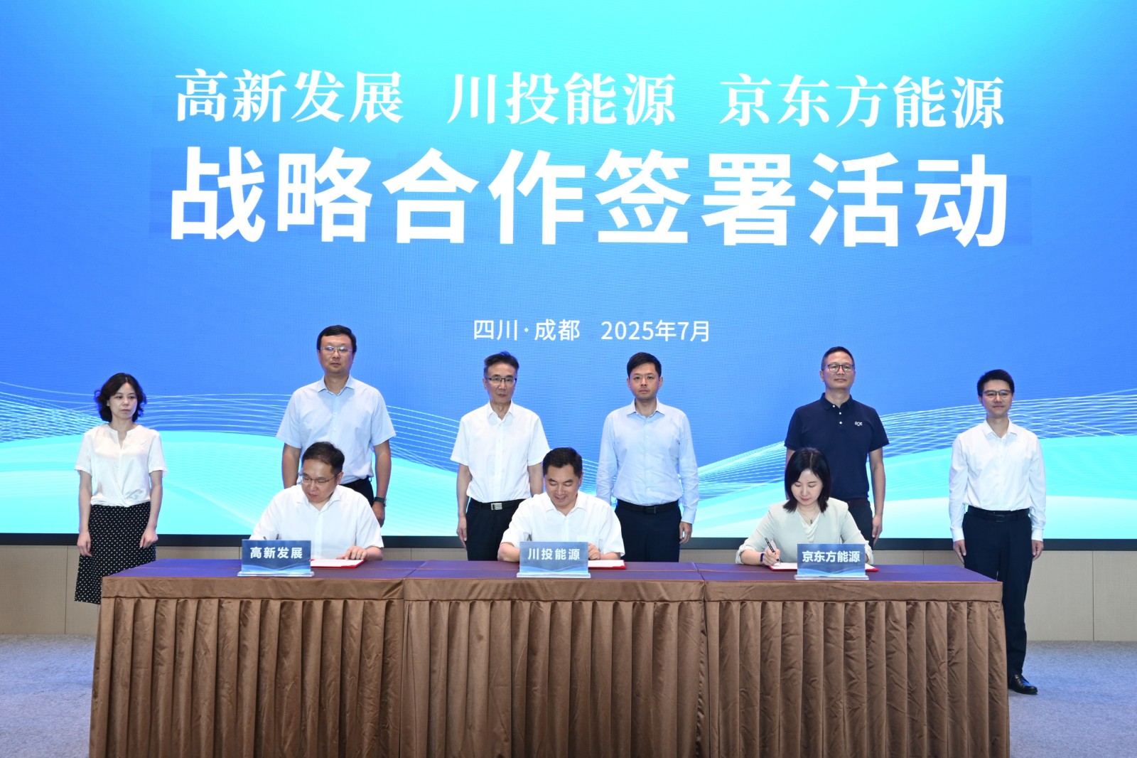7月25日,四川川投能源股份有限公司、成都高新發(fā)展股份有限公司與京東方能源科技股份有限公司在成都高新西區(qū)IC設(shè)計(jì)產(chǎn)業(yè)園簽署戰(zhàn)略合作協(xié)議,在全國范圍共同推進(jìn)新型儲(chǔ)能示范項(xiàng)目、能源互聯(lián)網(wǎng)構(gòu)建及新能源產(chǎn)業(yè)投資。成都高新區(qū)黨工委委員,管委會(huì)副主任車軸;四川能源發(fā)展集團(tuán)黨委副書記、副董事長、總經(jīng)理,川投能源董事長吳曉曦;京東方科技集團(tuán)副總裁,京東方能源科技黨支部書記、董事長馬亮;成都高投集團(tuán)黨委副書記、總經(jīng)理,電子集團(tuán)董事長,高新發(fā)展董事長周志等有關(guān)領(lǐng)導(dǎo)出席活動(dòng)并見證簽約。