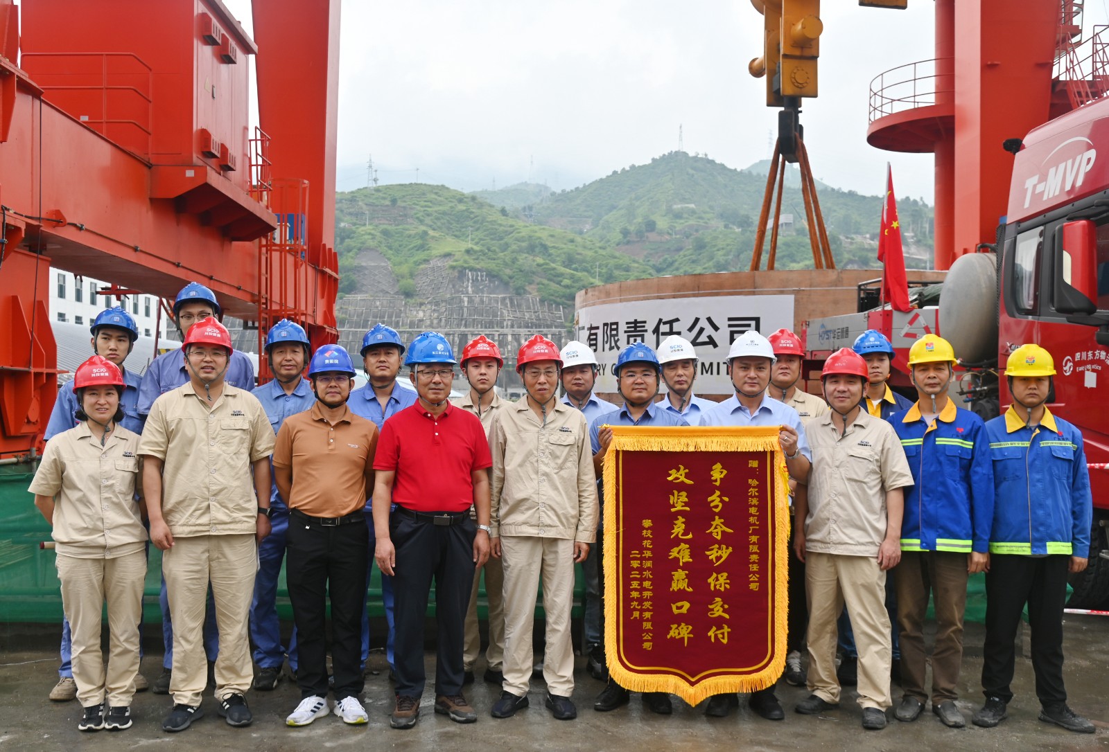 26日上午,現(xiàn)場各單位立即投入到吊裝前的準(zhǔn)備工作中。攀水電公司全程跟進(jìn)機(jī)電安裝進(jìn)展,逐一確認(rèn)安裝條件;施工單位技術(shù)人員按吊裝方案全面落實安全交底與技術(shù)措施,確保萬無一失;在各項準(zhǔn)備工作全面就緒的基礎(chǔ)上,6號機(jī)組的轉(zhuǎn)子支架平穩(wěn)、精準(zhǔn)吊裝就位。川投能源副總經(jīng)理、攀水電公司黨總支書記、董事長徐孝剛現(xiàn)場督導(dǎo)吊裝工作,充分肯定了哈電公司在本次極端條件下的運輸成績,并向哈爾濱電機(jī)廠有限責(zé)任公司授予錦旗,感謝其長期以來對銀江水電站建設(shè)的大力支持。