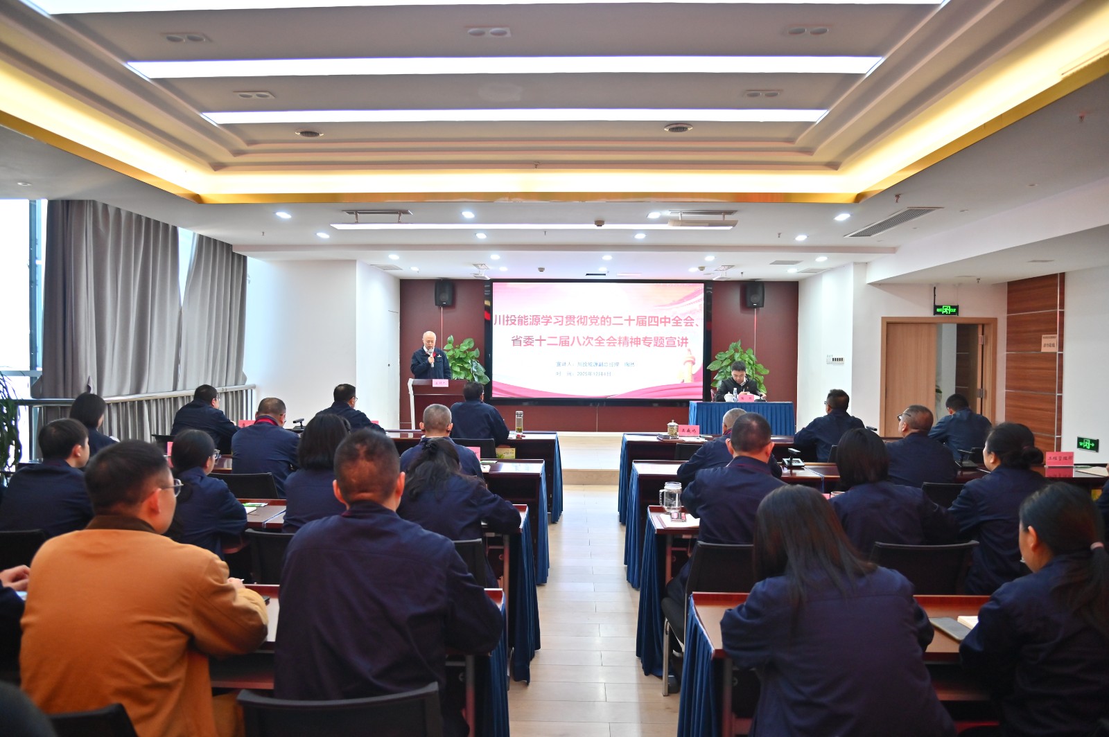 為深入學習貫徹黨的二十屆四中全會精神、省委十二屆八次全會精神,推動全會精神在基層一線落地生根,12月4日上午,川投能源副總經理陶然赴攀水電公司宣講黨的二十屆四中全會、省委十二屆八次全會精神,攀水電公司領導及職工共計35人參加。