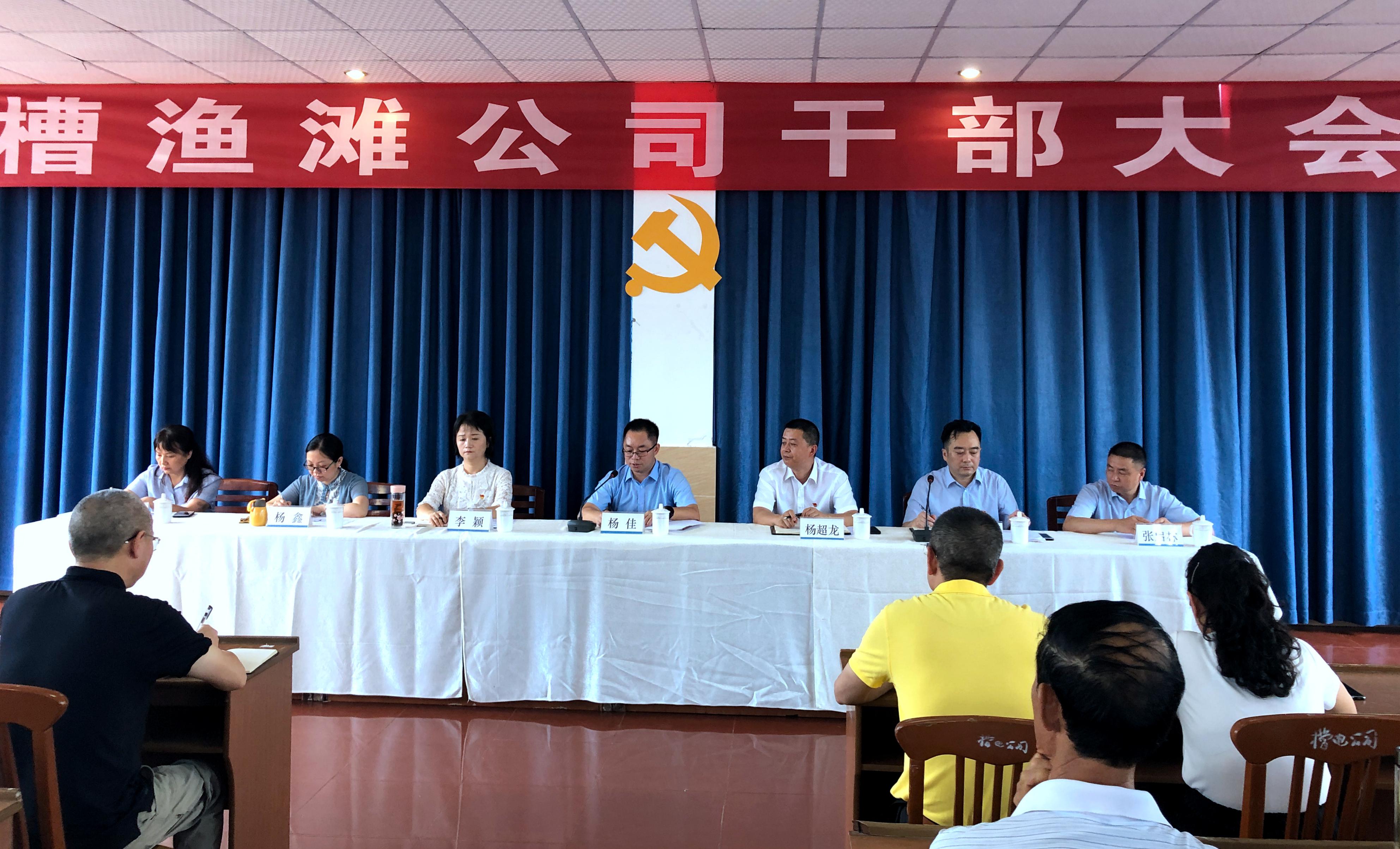 8月6日上午,川投能源所屬川投電力控股槽漁灘公司召開干部大會,洪雅縣國有企業黨委副書記、縣國資金融中心主任楊佳、川投能源黨委副書記、工會主席楊超龍出席會議并講話,會議由槽漁灘公司董事長楊濤主持,國資金融中心副主任李穎、川投能源黨群部主任楊鑫,公司中層以上干部參加會議。