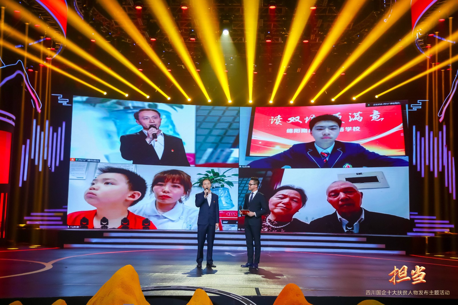 發(fā)布會上,樂山金口河區(qū)曙光村駐村工作隊隊員、川投集團川投能源員工馬庚,入選“四川國企十大扶貧人物”,并作為首位發(fā)布人物上臺接受主持人專訪。馬庚表示,表彰背后站著五年多來持續(xù)不斷傾力定點幫扶金口河區(qū)的川投集團,站著金口河區(qū)兢兢業(yè)業(yè)、勤勞樸實的全體干部群眾,更站著默默支持每一名扶貧工作者的家人、同事、朋友。大屏幕上,馬庚還與家人現(xiàn)場視頻連線,共同分享這份沉甸甸的榮譽。