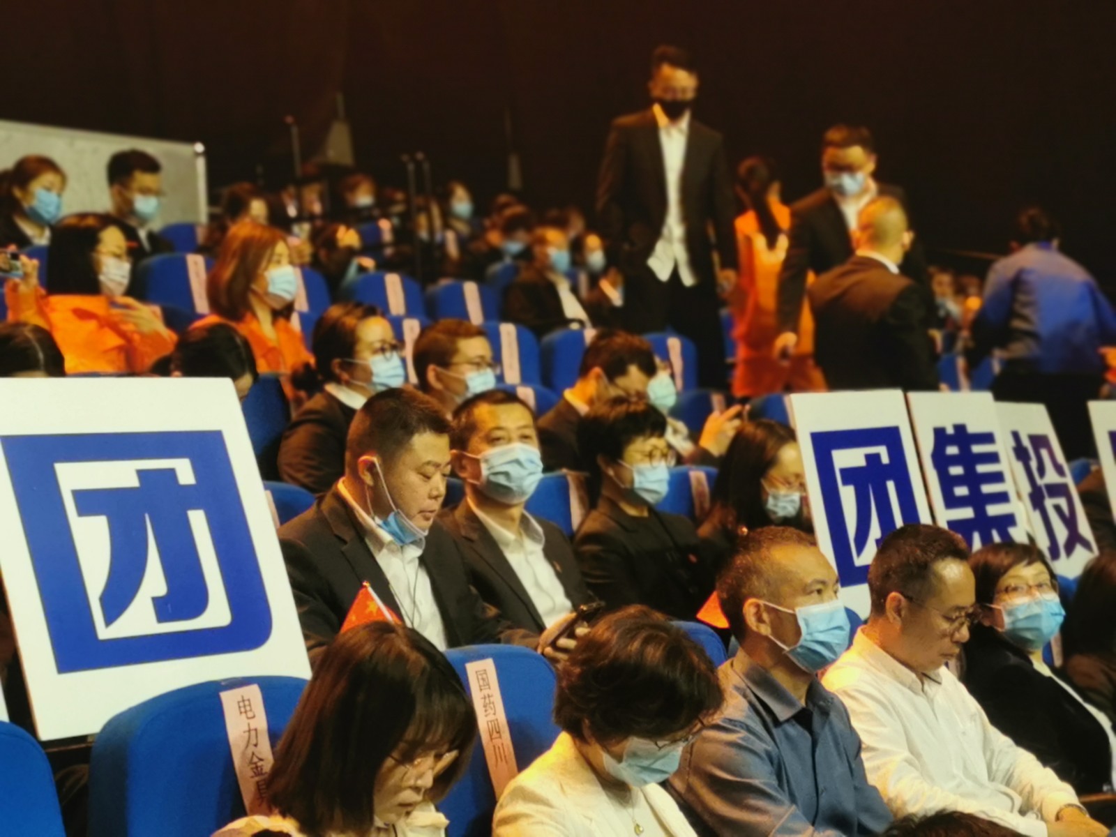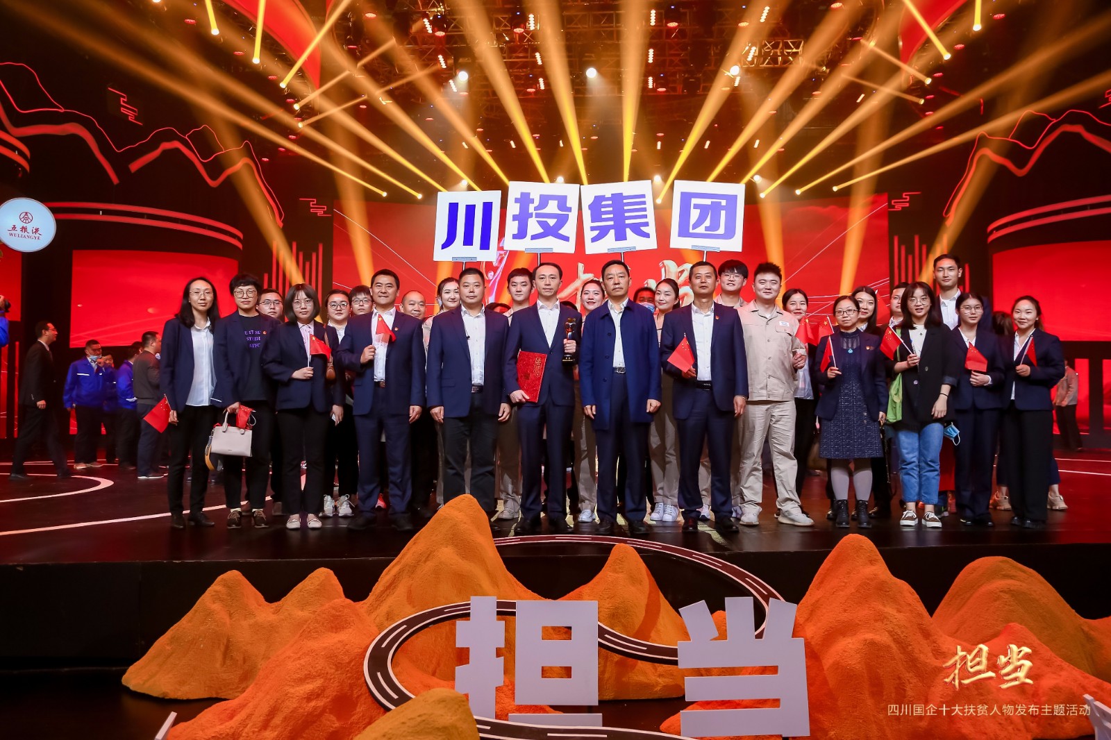 觀眾席上,28名川投能源員工手握國旗,整齊劃一地排座成一個醒目的企業(yè)方陣,在發(fā)布會場上,在脫貧攻堅的主戰(zhàn)場上,更在鄉(xiāng)村振興的新戰(zhàn)場上,高揚企業(yè)大旗、彰顯國企擔(dān)當(dāng)。活動結(jié)束后,川投集團黨委副書記、董事鄧凱、黨群工作部部長張碧波同川投能源演職人員合影留念。