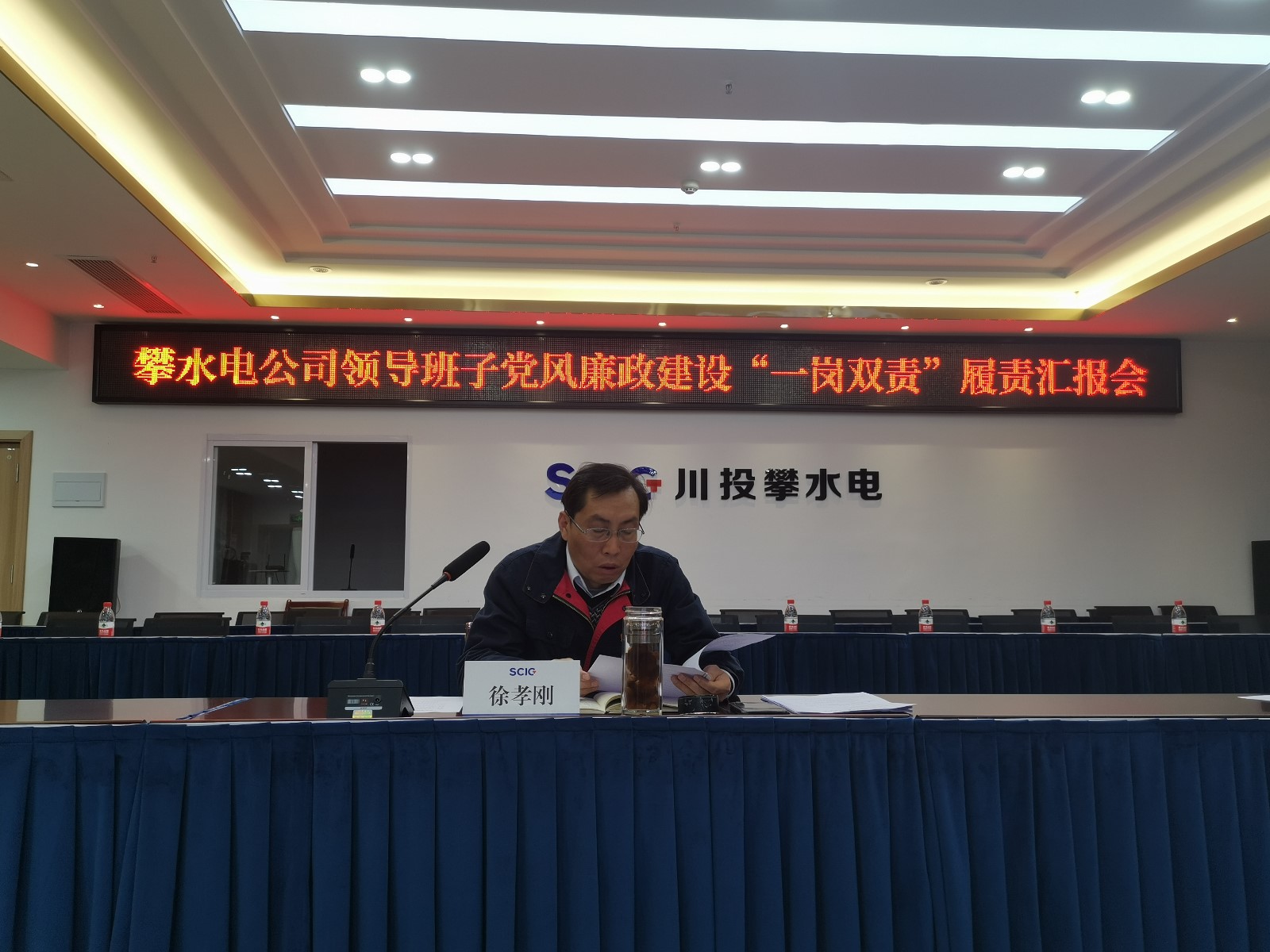 為貫徹落實(shí)全面從嚴(yán)治黨總體要求,進(jìn)一步強(qiáng)化公司黨總支全面從嚴(yán)治黨主體責(zé)任考核工作,根據(jù)中共中央辦公廳《黨委(黨組)落實(shí)全面從嚴(yán)治黨主體責(zé)任規(guī)定》以及川投能源黨委《落實(shí)全面從嚴(yán)治黨主體責(zé)任考核實(shí)施辦法》等相關(guān)規(guī)定要求。2021年12月13日,川投能源副總經(jīng)理、攀水電公司黨總支書記、董事長(zhǎng)徐孝剛組織召開專題會(huì)議,聽取4名領(lǐng)導(dǎo)班子成員(黨總支委員)落實(shí)黨風(fēng)廉政建設(shè)“一崗雙責(zé)”情況匯報(bào)。