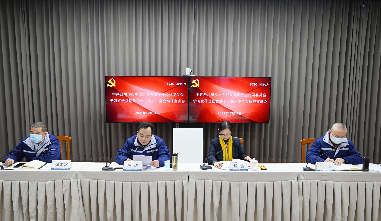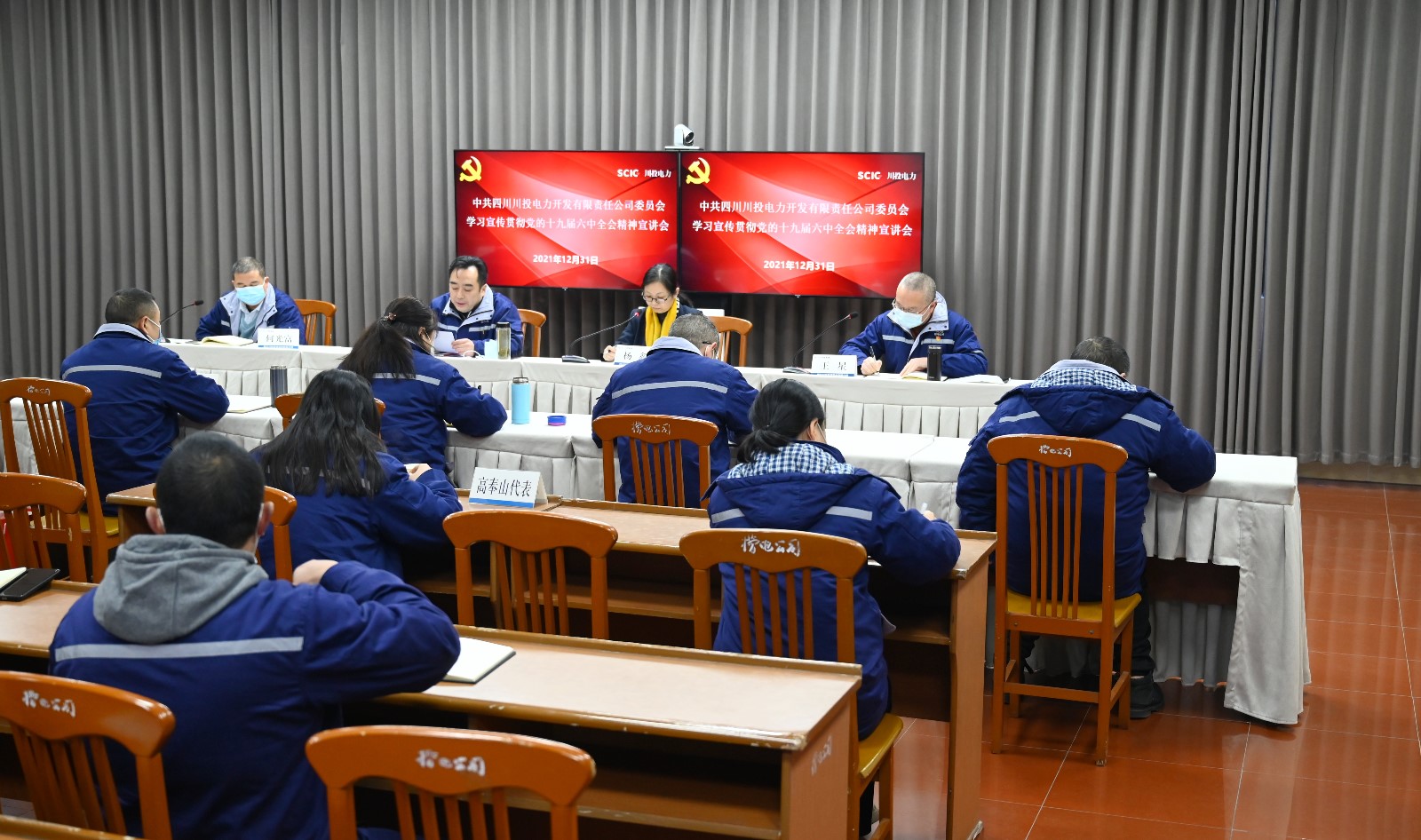 2021年12月31日,川投電力公司黨委在洪雅槽漁灘公司召開“學習宣傳貫徹黨的十九屆六中全會精神宣講會”。川投電力黨委書記、董事長楊濤在會上就十九屆六中全會精神作了專題宣講;宣講會由川投電力黨委副書記楊鑫主持。