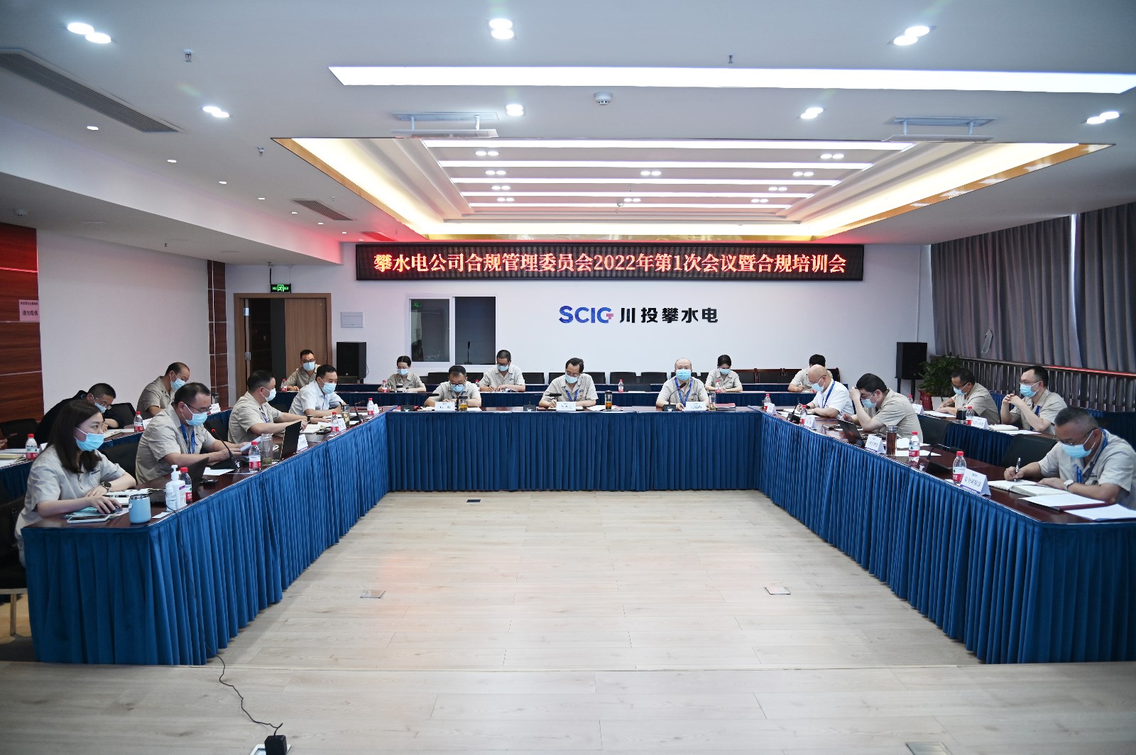 4月23日,攀水電公司合規(guī)管理委員會2022年第1次會議暨合規(guī)培訓會在公司2620會議室召開。川投能源副總經(jīng)理、攀水電公司黨總支書記、董事長、川投(攀枝花)新能源開發(fā)有限公司董事長、合規(guī)管理委員會主任徐孝剛出席會議并作重要講話,攀水電公司黨總支委員、總經(jīng)理、合規(guī)管理委員會副主任吳巍嶼主持會議,公司合規(guī)管理委員會、工作小組、合規(guī)辦公室人員共計21人參加會議,會議嚴格落實疫情防控要求,全程佩戴口罩。