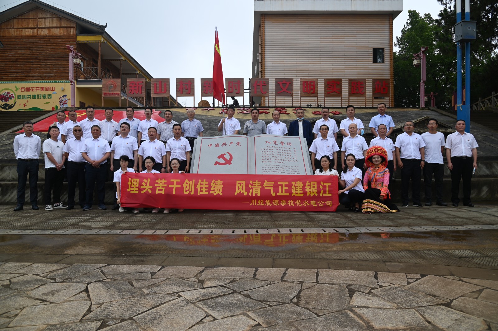上午10時30分,在攀枝花市黨風廉政教育示范點——米易縣新山傈僳族鄉新山村,川投能源副總經理、攀水電公司黨總支書記、董事長徐孝剛以“埋頭苦干創佳績,風清氣正建銀江”為題,為大家講授了一堂廉潔黨課。
