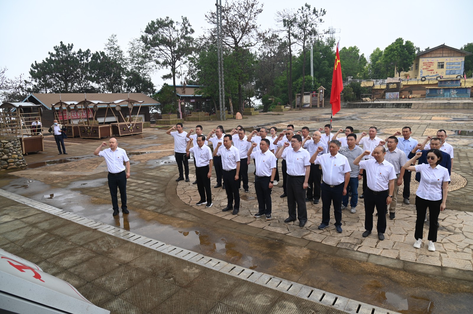 黨課結束后,在新山村村委會副主任張華美的帶領下,大家先后參觀了新山村傈僳族家風棧道、文化廣場、文化展覽館以及家風刺繡館,充分了解了傈僳族獨特的文化歷史與質樸的“人生如織布,不能錯一步”家風傳承。在文化廣場漢、傈雙語入黨誓詞雕塑前,公司黨總支委員、總經理吳巍嶼帶領全體黨員一起重溫了入黨誓詞,激勵提醒全體黨員不忘初心、牢記使命,始終堅定自己的理想信念,進一步加強自身黨性修養。