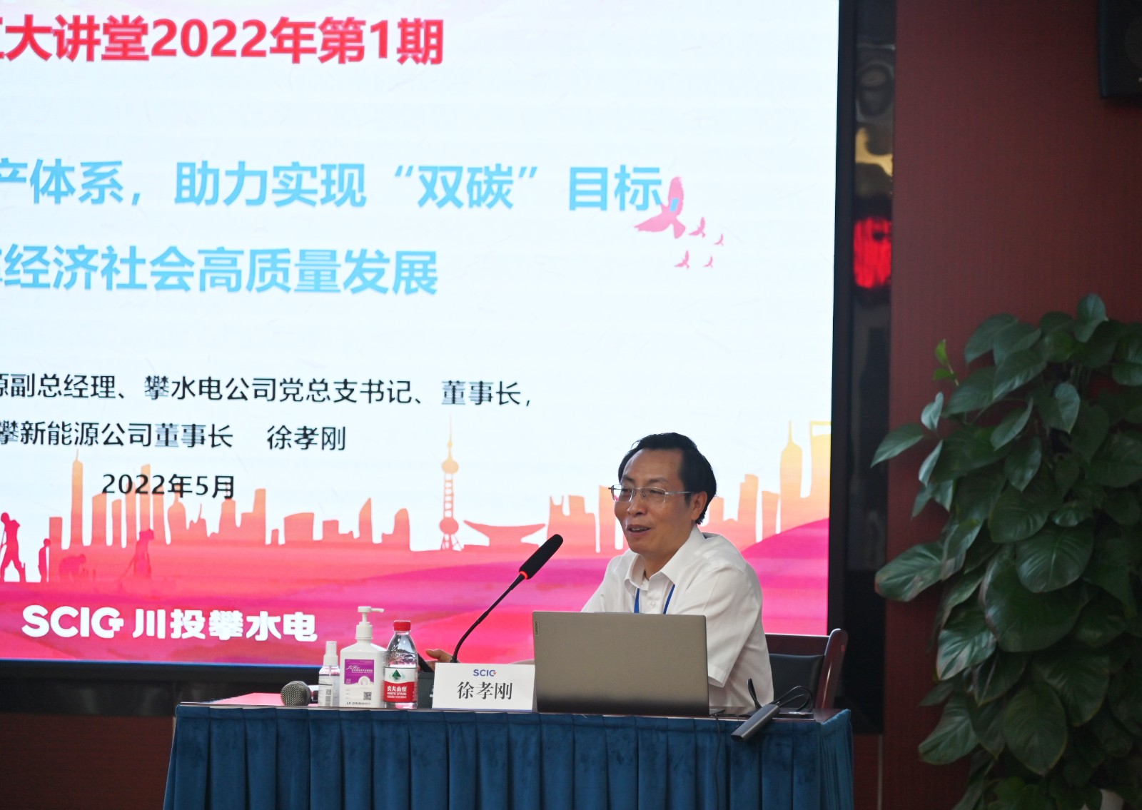 活動中,醫院急診科蘇曉勇主任、腫瘤科廖玲醫師分別以《熱愛生命,關注腫瘤》和《心肺復蘇術》為主題,為攀水電公司和參建單位員工代表帶來了的健康知識講座,并進行了身臨其境的互動教學。徐孝剛講授了《構建清潔能源生產體系,助力實現“雙碳”目標,支撐經濟社會高質量發展》為題的主題黨課,從“碳達峰與碳中和的背景”、“雙碳目標的形勢要求”、“清潔能源體系在雙碳目標中的重要地位”、“構建清潔能源生產體系的實施路徑及公司相關工作開展情況”四個方面,向大家介紹了目前國家的能源發展戰略、發展要求和發展形勢,并向大家介紹了攀水電公司和攀新能源公司相關工作的推進情況。徐孝剛講到,公司作為能源行業的國有企業,在構建清潔能源生產體系的過程中責任重大、使命光榮,并號召公司黨員群眾要不忘初心、牢記使命,為實現雙碳目標積極做出更大的貢獻。