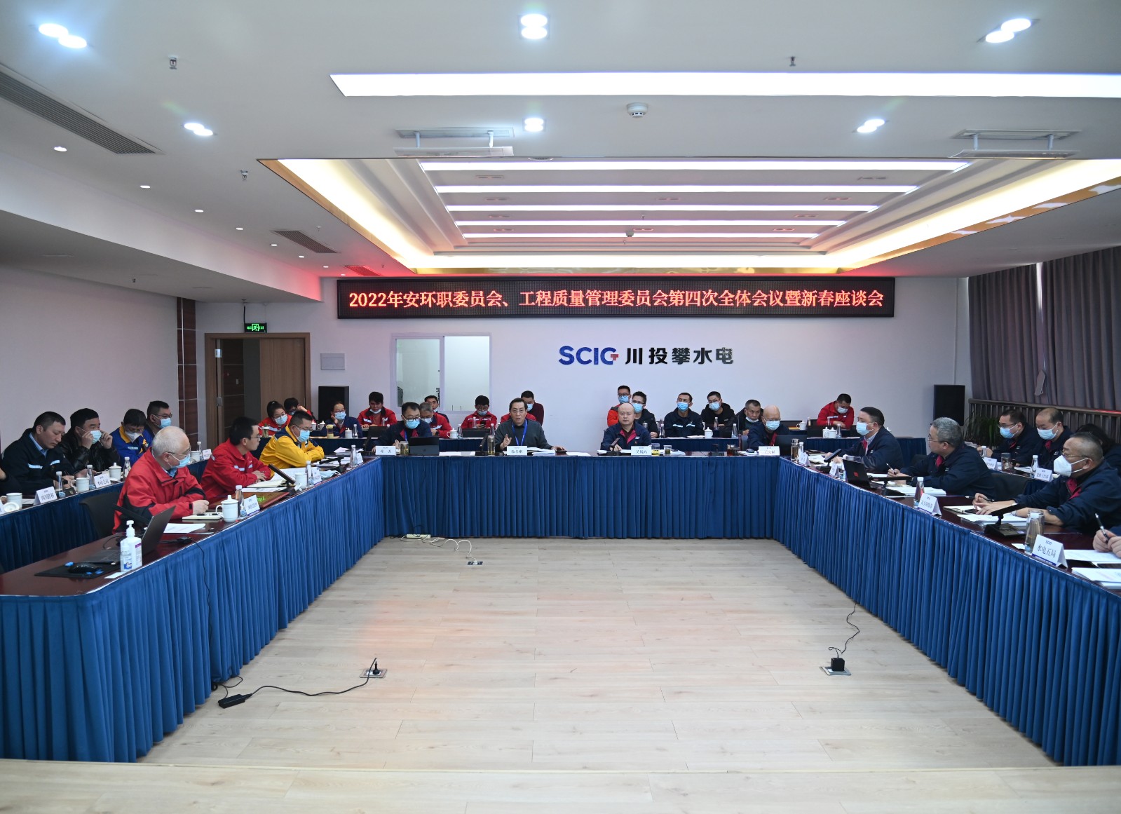 近日,攀水電公司在組織召開了工程質量管理委員會2022年第四次(年度)全體會議,川投能源副總經理、公司黨總支書記、董事長、質委會主任徐孝剛及公司在攀領導出席會議,會議由公司黨總支副書記、總經理、質委會主任吳巍嶼主持,公司工程管理部、安全環保部、計劃合同部、黨群工作部,長江設計公司設計代表處、各監理部、各第三方質量檢測單位、各施工單位項目部領導及主管質量負責人共計40余人參加會議。