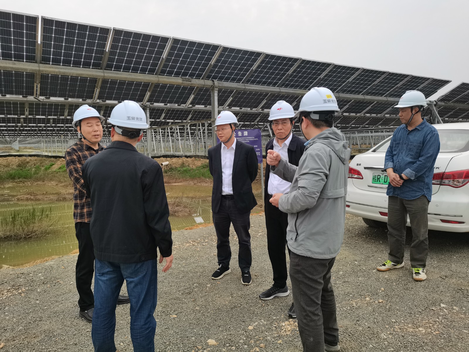 徐孝剛一行首先來(lái)到廣西農(nóng)光公司桂平光伏電站現(xiàn)場(chǎng),對(duì)電站設(shè)備運(yùn)行狀態(tài)、設(shè)備缺陷處理情況進(jìn)行了全面了解,重點(diǎn)檢查了一期小龍蝦養(yǎng)殖基地的安全隱患整改工作,要求盡快完善廣西農(nóng)光公司的防臺(tái)、防汛、防澇等應(yīng)急處置預(yù)案,同時(shí)對(duì)生產(chǎn)運(yùn)營(yíng)部、運(yùn)維單位在第三方(如清洗公司、農(nóng)業(yè)作業(yè)人員)的安全管理上做出了更加嚴(yán)格的、切合實(shí)際情況的要求(如:加強(qiáng)外來(lái)人員的安全培訓(xùn)、完善光伏場(chǎng)的應(yīng)急逃生路線標(biāo)識(shí)等)。徐孝剛表示,一是要提高政治站位,增強(qiáng)主責(zé)意識(shí),時(shí)刻保持警惕之心、緊繃維穩(wěn)之弦,扎實(shí)有效做好安全穩(wěn)定工作。二是要加強(qiáng)值班值守,落實(shí)24小時(shí)值班制度,領(lǐng)導(dǎo)干部和關(guān)鍵崗位保持通信暢通,進(jìn)一步筑牢安全防線,堅(jiān)決杜絕影響社會(huì)穩(wěn)定事件發(fā)生。