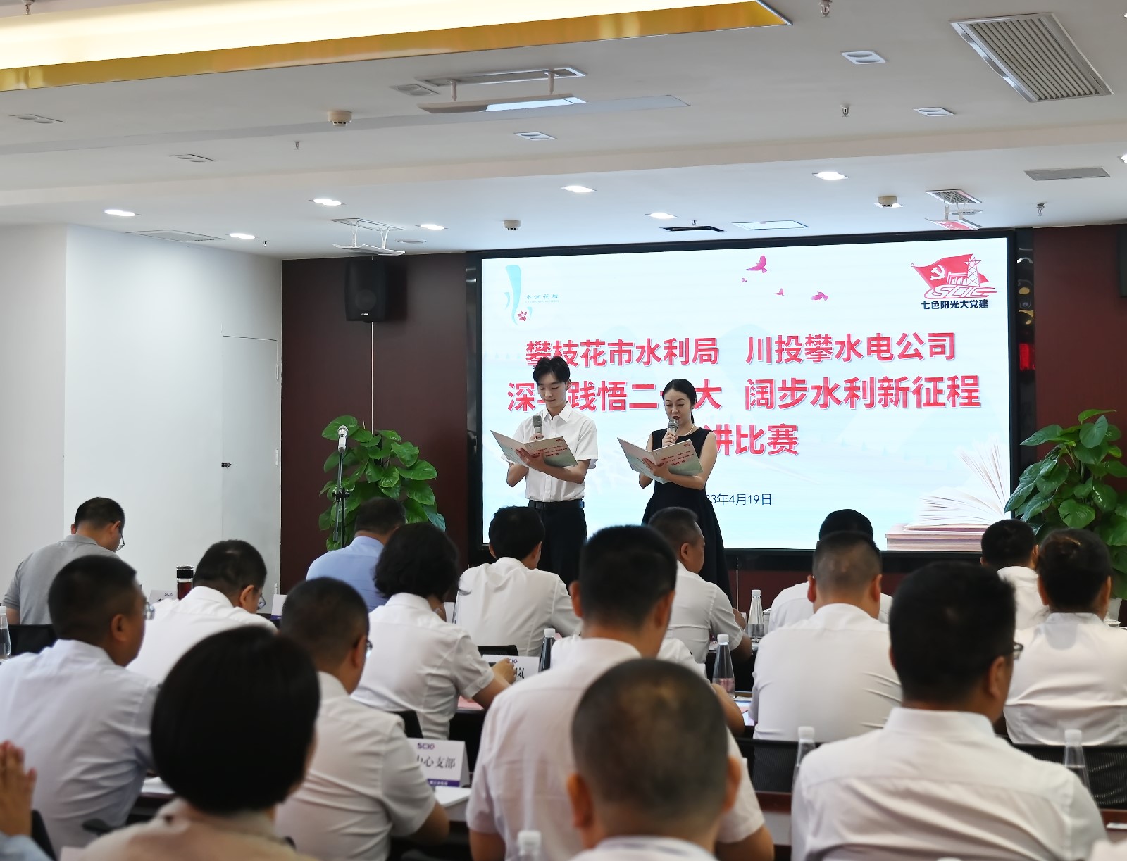 為全面貫徹黨的二十大精神,扎實開展學習貫徹習近平新時代中國特色社會主義思想主題教育,在攀水電黨總支開展主題教育領導干部讀書班期間,為豐富學習形式,營造濃厚學習氛圍,近日,攀水電公司與攀枝花市水利局共同舉辦了“深學踐悟二十大、闊步水利新征程”深化“水潤花城”黨建品牌建設暨政企黨組織共建活動,開展征文和演講比賽。攀枝花市直機關工委常務副書記鮮明,攀枝花市水利局黨組成員、副局長林兆東,黨組成員、機關黨委書記胡嘉,川投能源副總經理、攀水電公司黨總支書記、董事長、攀新能源董事長徐孝剛及讀書班成員參加此次活動并擔任評委。