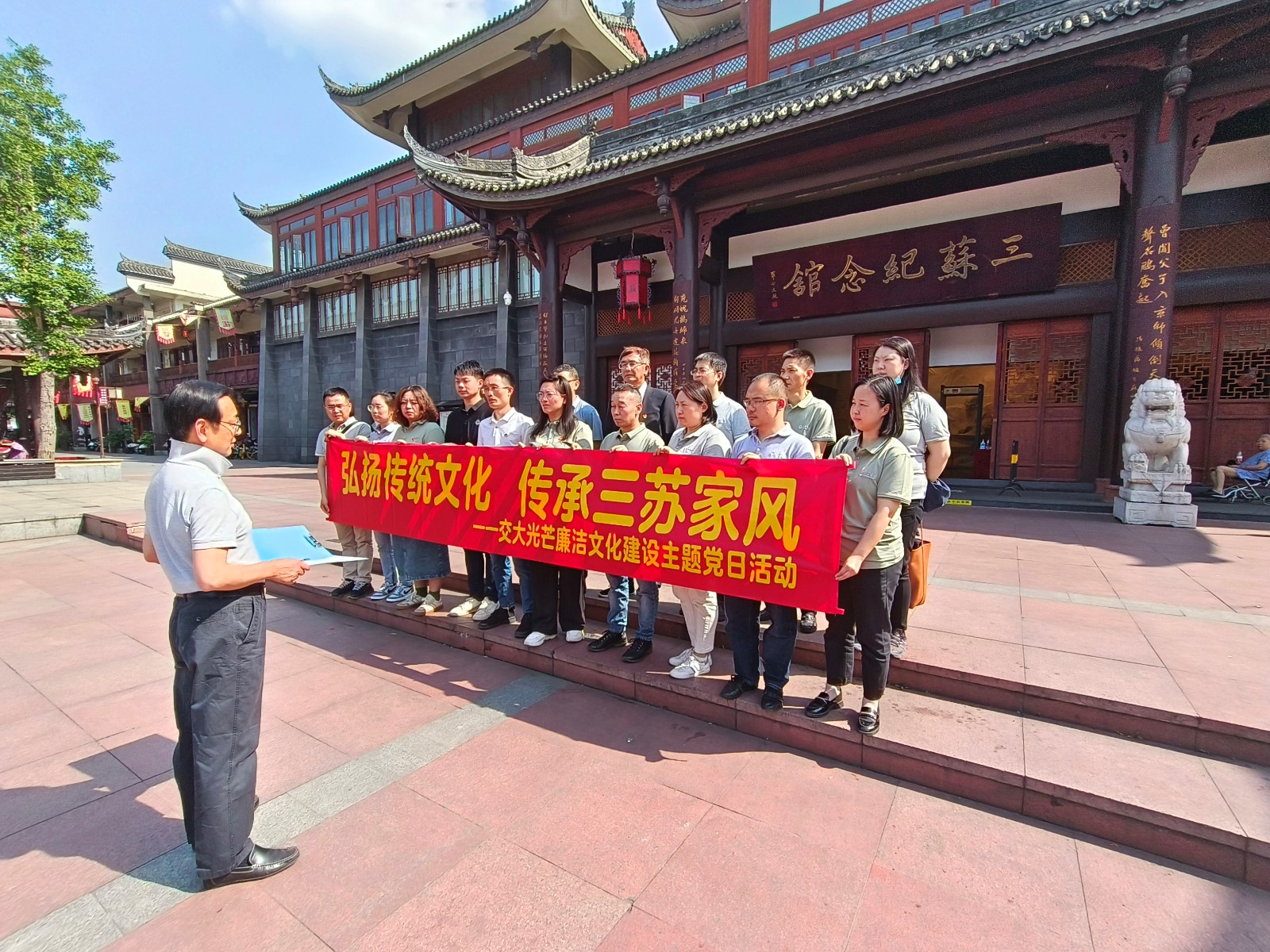 為深入學習貫徹習近平總書記關于注重家庭家教家風建設的重要論述和黨的二十大精神,大力弘揚和傳承優秀傳統文化,4月27日,交大光芒黨總支組織經營班子成員、中層管理人員、關鍵崗位人員赴三蘇祠開展廉潔文化建設主題黨日活動。