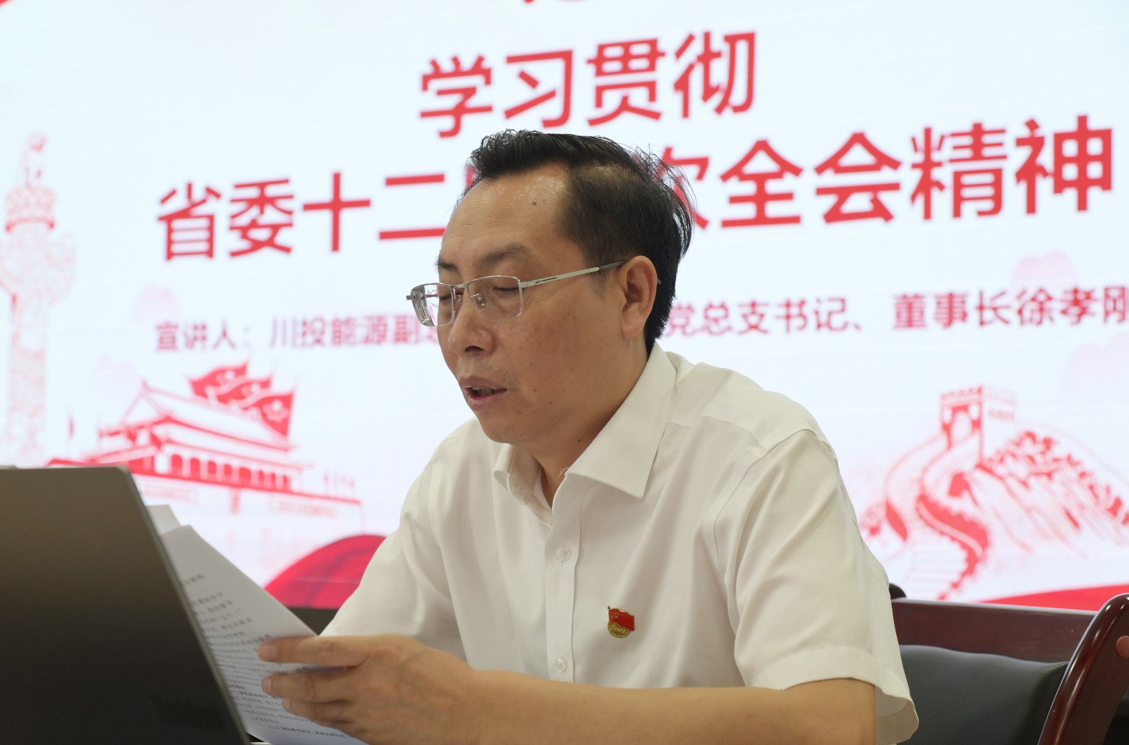 徐孝剛強調,一是要全面落實習近平總書記對四川工作系列重要指示精神,深入實施“四化同步、城鄉融合、五區共興”發展戰略,全面準確把握省委十二屆三次全會精神;二是公司領導班子成員要帶頭在分管部門和指導聯系支部進行宣講,抓好學習宣傳貫徹,各支部和廣大黨員干部要切實把思想和行動統一到省委全會精神上來;三是要深刻領會全會精神,牢牢把握高質量發展這個首要任務,切實把學習成果轉化為履職擔當、攻堅克難的實際行動,確保省委十二屆三次全會精神在攀水電公司和銀江水電站落地落實、深入人心,全力推進各項工作任務高質量完成。