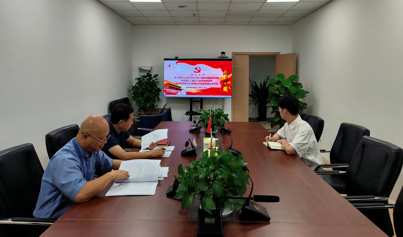 攀新能源領導班子成員及全體員工參加專題宣講,公司全體黨員參加黨支部理論學習會。