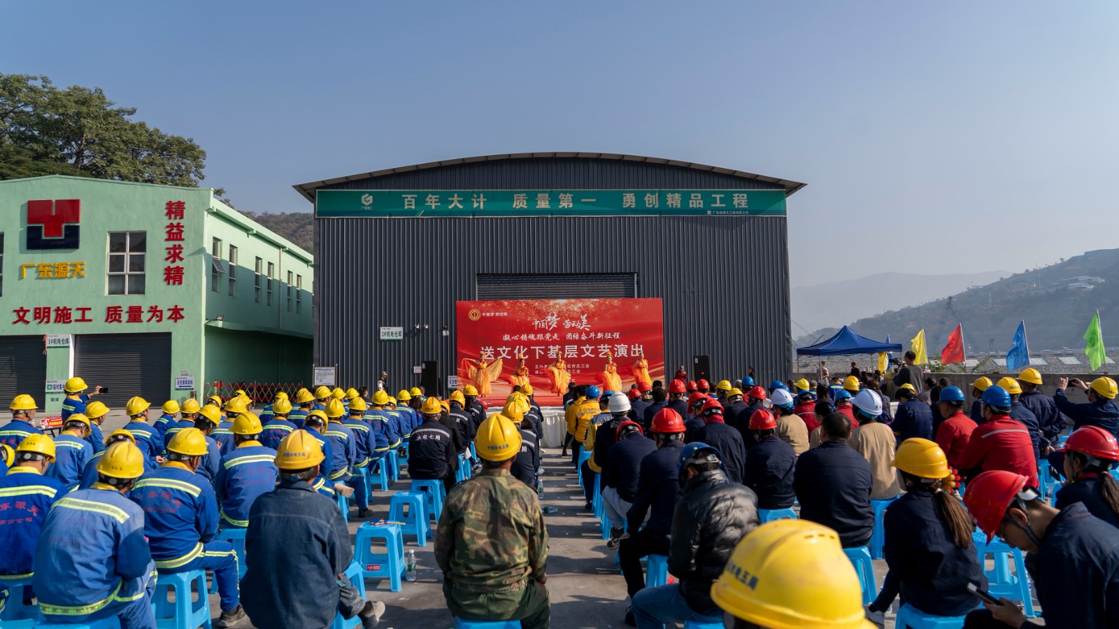 為深入學習貫徹黨的二十大精神、習近平總書記來川視察重要指示精神,11月29日上午,由攀枝花市總工會主辦,東區總工會、攀水電公司承辦的“中國夢·勞動美——凝心鑄魂跟黨走 團結奮斗新征程”2023年“送文化下基層”文藝演出在銀江水電站工地火熱開展。川投能源副總經理,攀水電公司黨總支書記、董事長徐孝剛出席活動,攀枝花市總工會、東區總工會、攀水電公司及參建單位200余人參加。