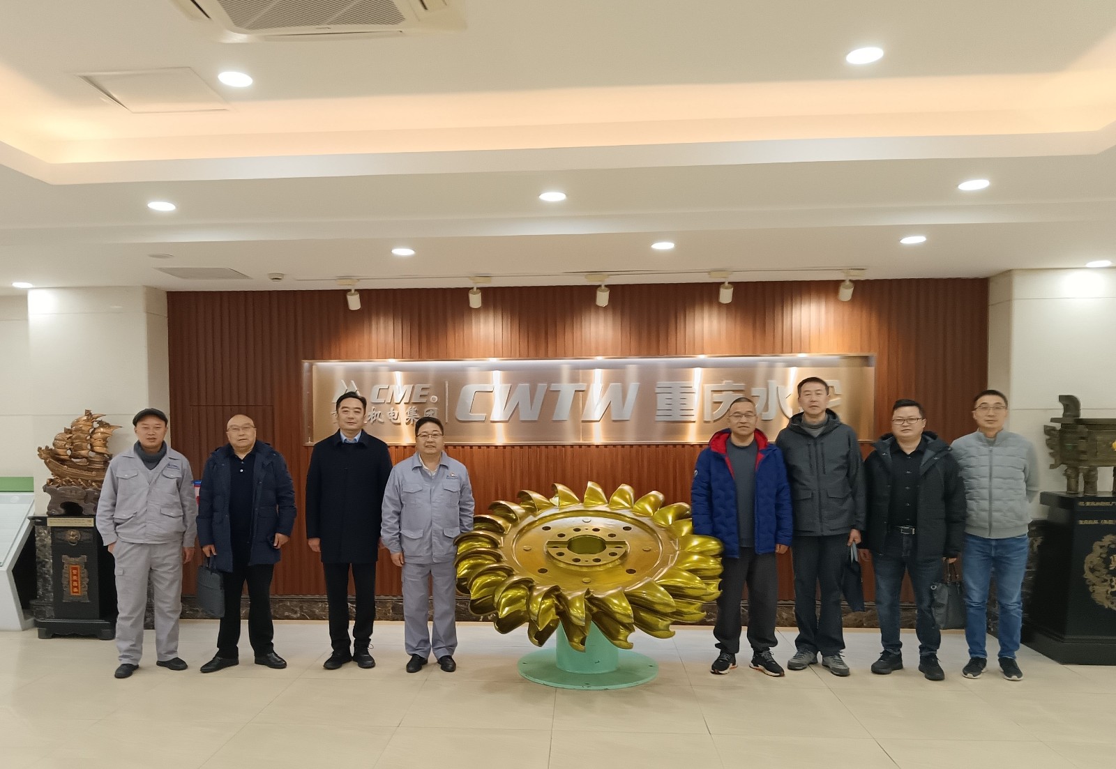 在重慶水輪,重慶水輪董事長彭忠對調研組的到訪表示熱烈歡迎,并介紹了公司發展歷程、技術能力、人才儲備等情況,分享了水輪機組修復方面的前沿技術。隨后,彭忠陪同調研組參觀了一線生產車間,詳細介紹了水電設備的生產流程、生產工藝、產品質量把控、安全管理、進度保障等重點問題關鍵環節。楊濤表示,希望重慶水輪充分發揮自身技術資源,為我司設備維修維護、技術改造方面給予一如既往的支持。