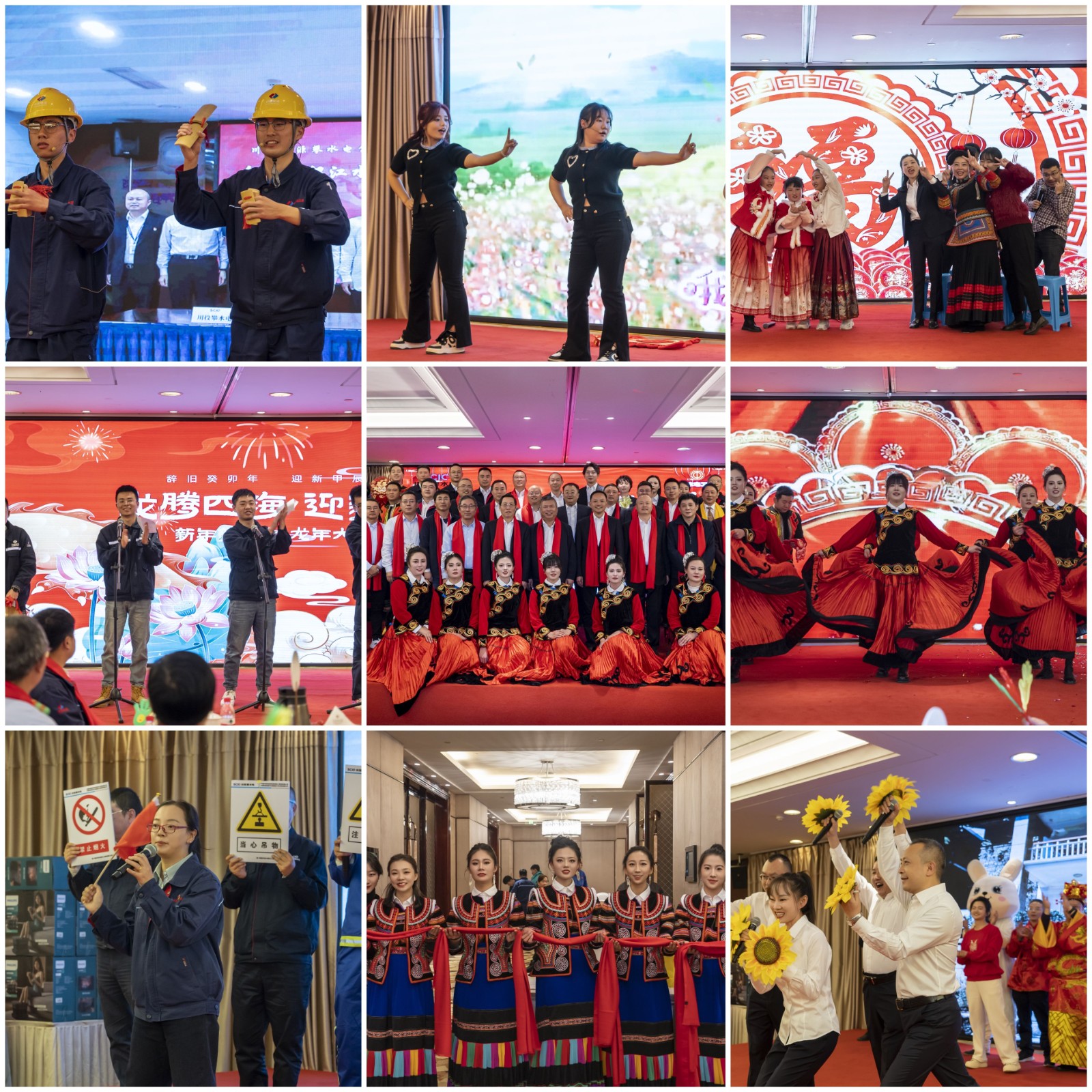 座談會后,攀水電公司組織了“銀江之春”職工文藝匯演,本次文藝匯演所有節(jié)目均由公司各部門和各參建單位員工利用休息時間自編自導自演,大家以歌舞、情景劇、快板等形式共12個節(jié)目,展現(xiàn)了大家在銀江水電站建設(shè)中的工作日常和酸甜苦辣。來自水電七局項目部的三句半“賀新春”,說出了電站砂石骨料系統(tǒng)質(zhì)量管控的種種細節(jié);計劃合同部員工們一改往日的嚴肅,以一首嘻哈版“銀江DISCO”講述了招標和合同管理中的艱辛與困難;各參建單位安全員共同參演的“安全記心間”提醒大家時刻不能忘安全;水電五局項目部快板“禮贊銀江水電站”表達了攻堅克難筑大壩的信心和決心;黨群工作部脫口秀“十大心動瞬間發(fā)布會”以沙畫的方式帶領(lǐng)大家重溫了川投能源職工運動會中的感人故事;活動中,公司還與攀枝花市移動公司簽訂了戰(zhàn)略合作協(xié)議,攜手將銀江水電站打造成“5G+智慧電廠”, 由雙方領(lǐng)導帶領(lǐng)的大合唱“龍的傳人”更是催人奮進。