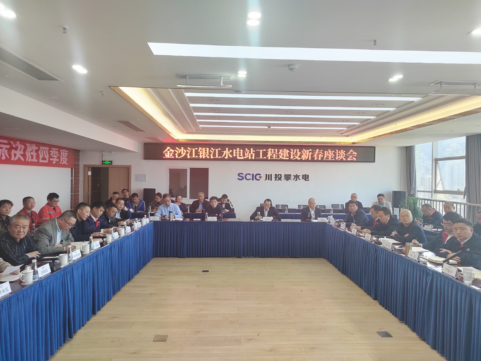 為全面總結(jié)2023年工程建設(shè)情況,安排部署春節(jié)期間及2024年重點工作,1月30日,攀水電公司組織召開銀江水電站新春座談會,川投能源副總經(jīng)理、公司黨總支書記、董事長徐孝剛,公司領(lǐng)導、部門負責人、參建單位主要負責人及材料供應商等共計40余人參加會議,會議由公司黨總支副書記、總經(jīng)理吳巍嶼主持。