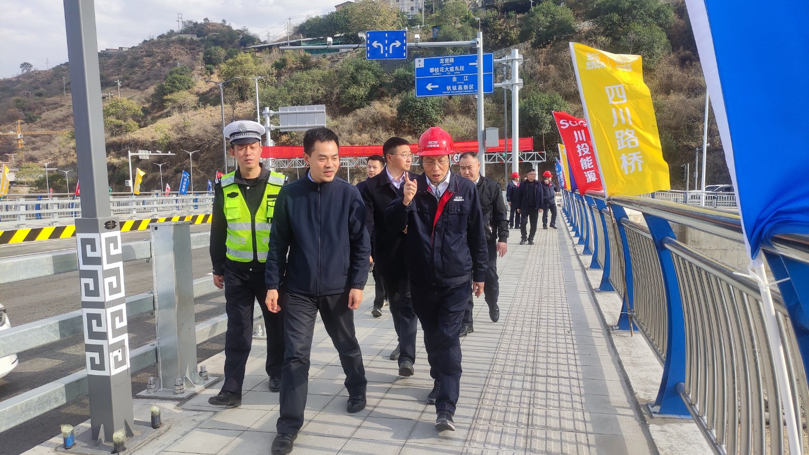 隨后17點,攀枝花市分管交通運輸副市長唐忠柱帶隊對銀江大橋通車情況進行了現場檢查,他對公司及參建單位的辛勤付出表示衷心的感謝,并承諾將積極推動銀江大橋墊資事項解決方案落實落地。