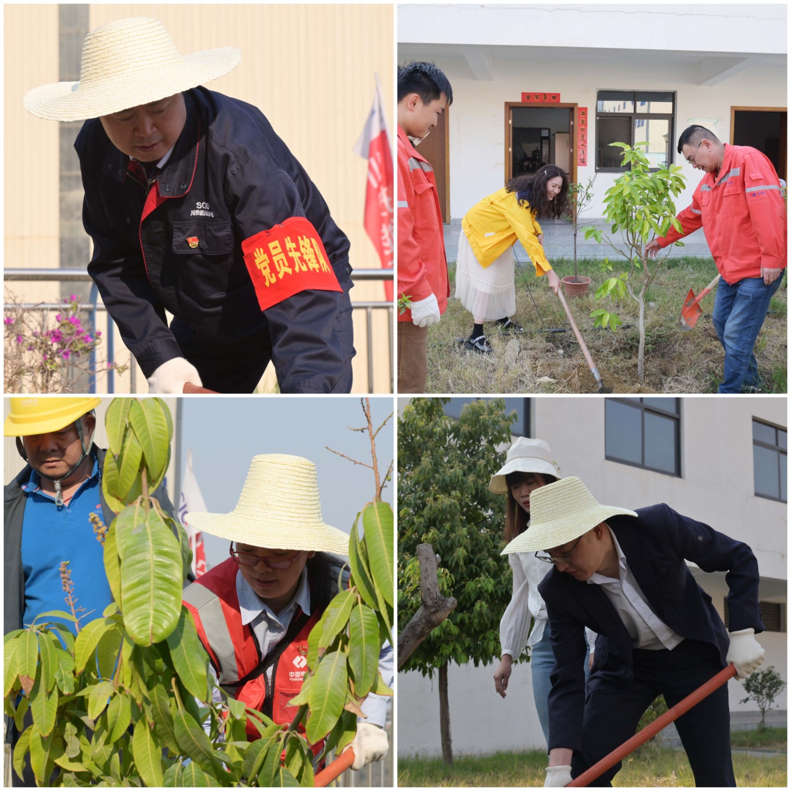 活動開始,各支部組織人員有序修整各自的責任田,去年種下的芒果樹長勢總體向好,大家首先對芒果樹進行除草、松土、施肥、澆水;今年,公司為各支部準備了新的樹苗,大家熱情高漲,分工協作,揮鍬鏟土、挖坑栽樹、填土澆水,經過一個多小時的忙碌勞作,石榴、蜜桃、柑橘、桂花、白玉蘭等一棵棵新栽下的樹苗昂然挺立,在春風中搖曳生姿,煥發著盎然綠意,為銀江大黨建宣傳園地增添了鮮活的“綠動力”。