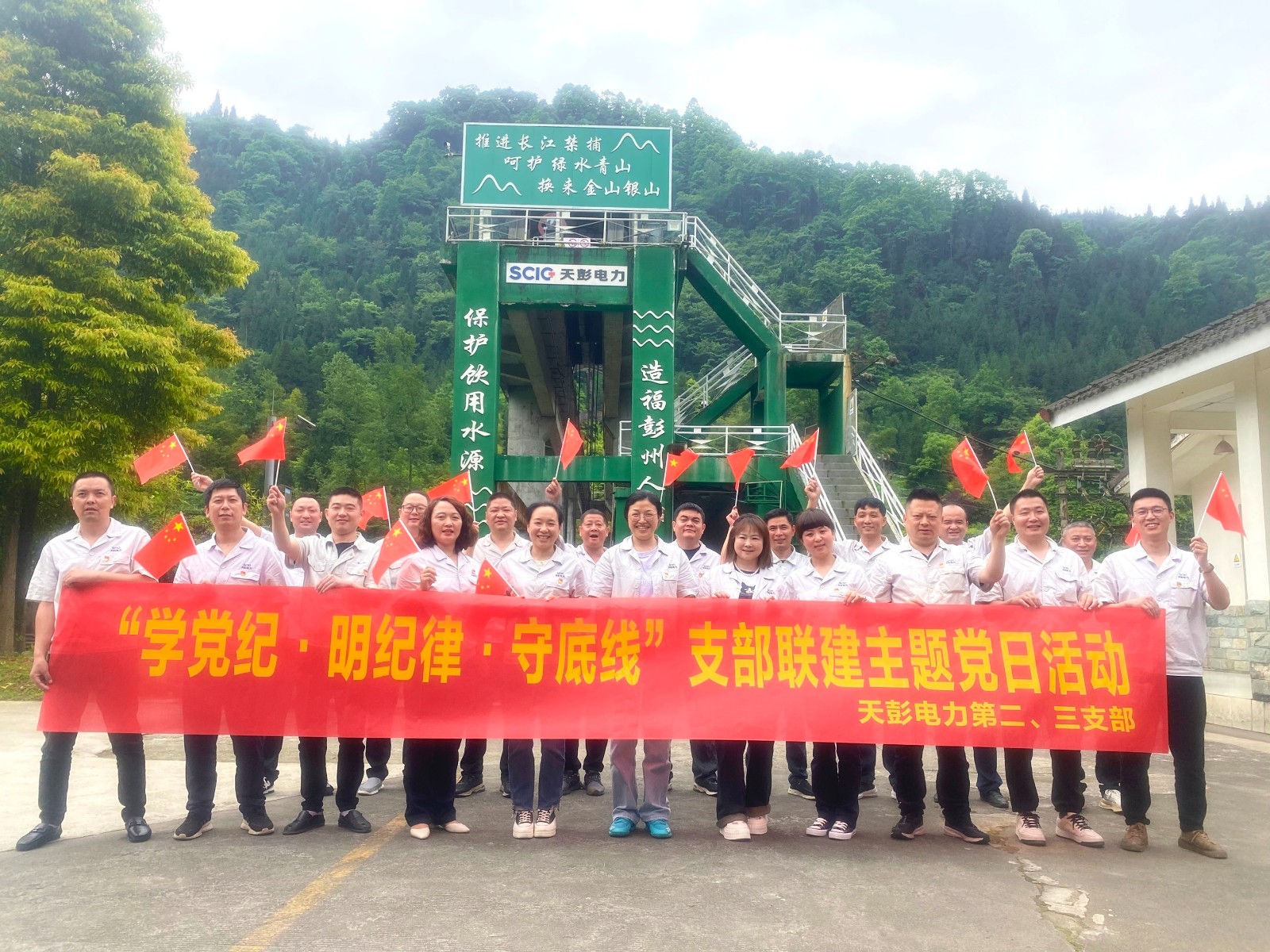 為深入推進黨紀學習教育,學習貫徹新修訂《中國共產黨紀律處分條例》,增強黨員干部紀律規矩意識和拒腐防變能力,5月22日,天彭電力第二、三支部在沙金車間鳳鳴湖大壩開展了“學黨紀·明紀律·守底線”支部聯建主題黨日活動,第二、三支部全體黨員、入黨積極分子參加活動。