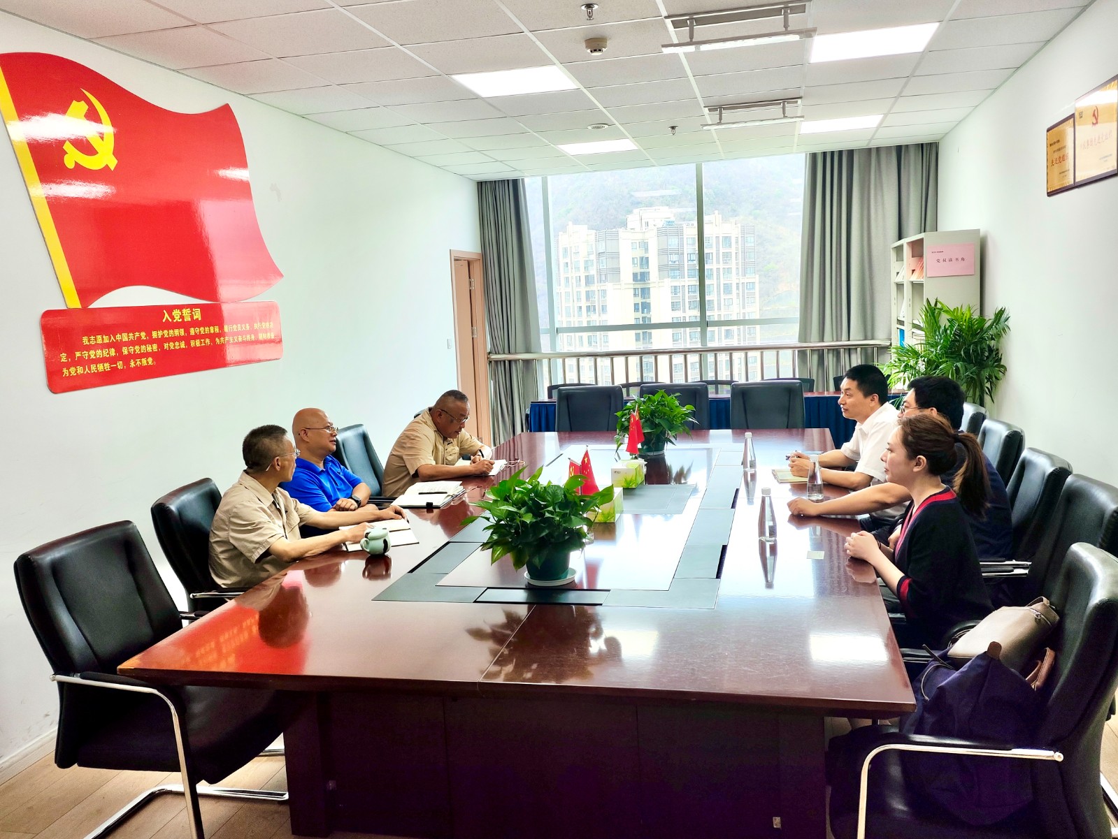 首先在攀水電公司辦公地召開了見面會。會上,王俊森介紹了銀江水電站的工程建設特點、現階段施工重點和安全生產組織機構及人員配置情況等;尤其強調工程質量及安全是今年“保一爭二”目標實現的基礎。公司不斷采取措施提高全員安全責任意識,強化質量管控,確保質量安全可控在控,堅決杜絕安全事故發生,為全面實現今年發電目標落地筑牢防線。黃超對攀水電公司長期以來對平安產險四川分公司的支持和信任致以感謝。他表示,平安產險四川分公司為提高投保企業抗風險能力,協助開展風險減量和管控工作,因此在汛期到來之際,組織此次重大客戶工程項目的專項風險巡訪。