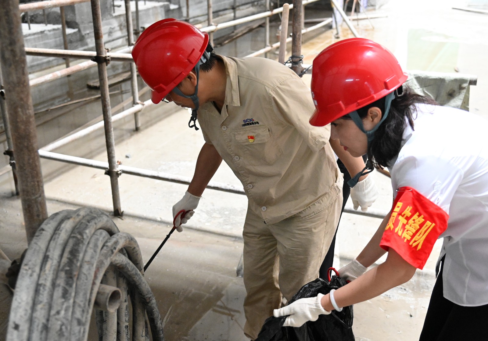 大家來到銀江水電站壩頂施工通道,對現(xiàn)場吊裝點及各施工作業(yè)面衛(wèi)生清潔區(qū)域進行了清掃分工,各支部黨員同志沖鋒在前,主動帶領其他黨員同志、志愿者對銀江水電站壩頂、壩頂至安裝間通道、安裝間、副廠房等區(qū)域進行了衛(wèi)生清掃、垃圾清運,并協(xié)調(diào)了臨時堆放物資、安裝構建的整理吊裝等,為后期轉(zhuǎn)子支架到達現(xiàn)場營造了整潔、便捷的環(huán)境。