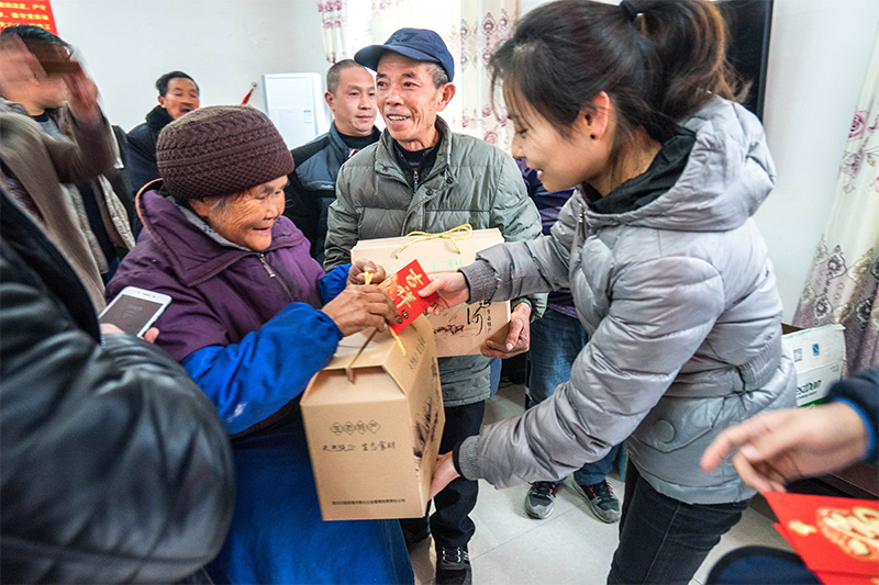 茶話會后,朱莉送上了田灣河公司支援村委會的辦公設備,并對在場貧困戶發放代表喜慶、祝福的新年紅包和慰問品。隨后在村黨支部曾書記帶領下,田灣河公司一行人實地上門走訪部分行動不便未能參加活動的貧困戶,關心他們的生活起居、衣食住行,并幫助他們打掃衛生、貼春聯、送祝福。一片忙碌的景象,讓貧困戶提前感受到節日的喜慶。