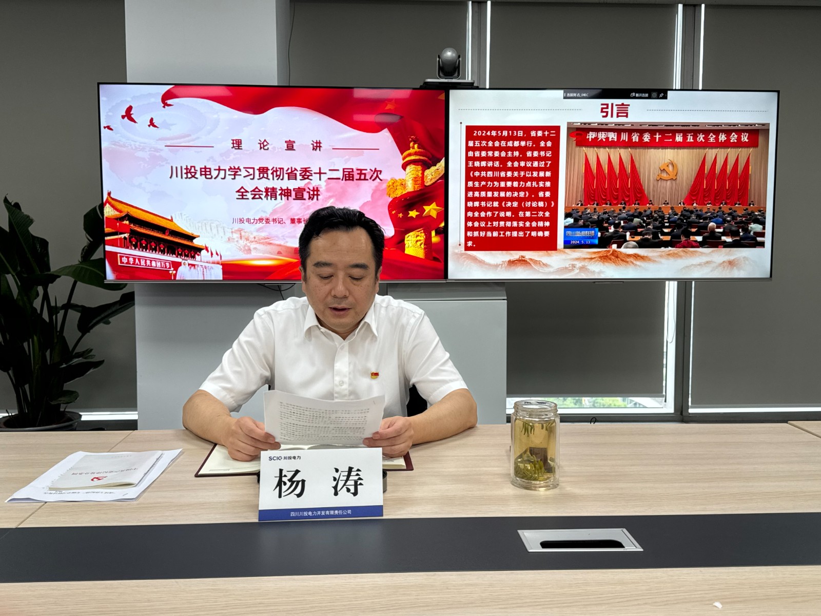 為全面深入學習宣傳貫徹省委十二屆五次全會精神,切實將公司各級黨組織和廣大黨員干部的思想行動統一到省委的決策部署上來,7月8日,川投電力黨委書記、董事長楊濤專題宣講中共四川省委十二屆五次全會精神。