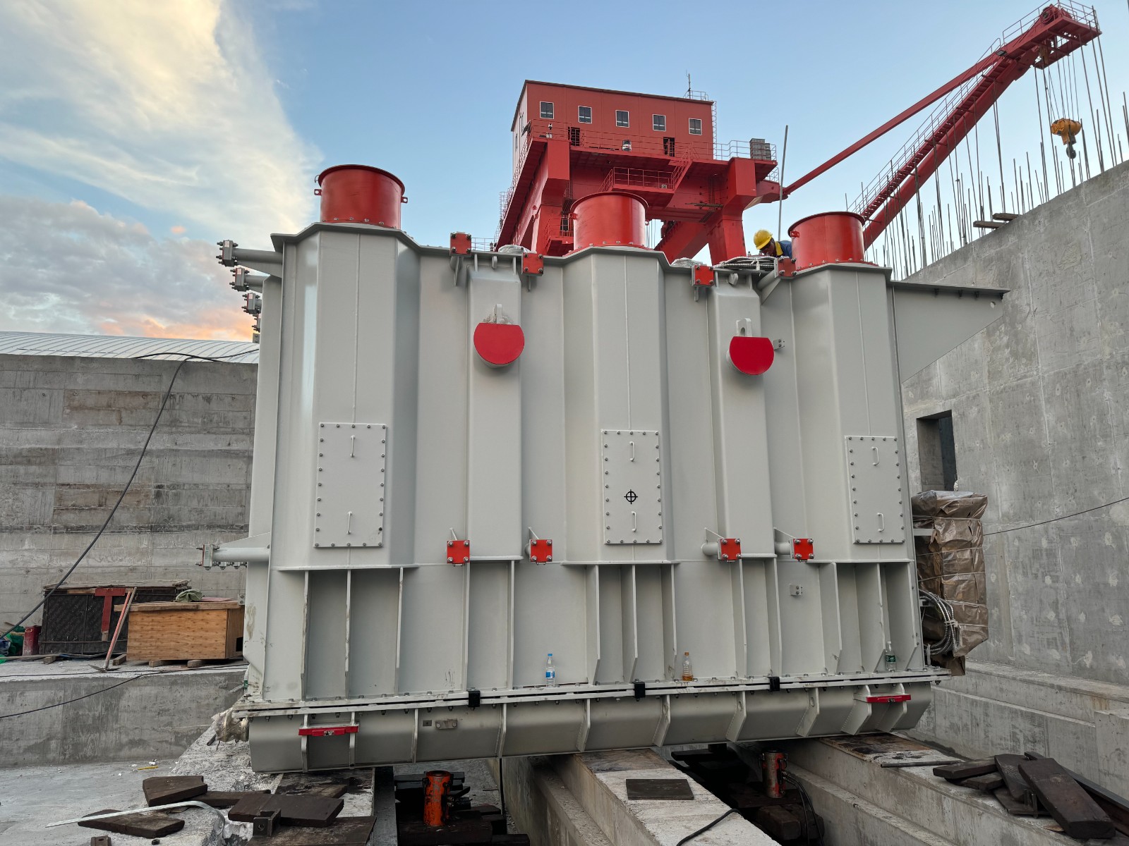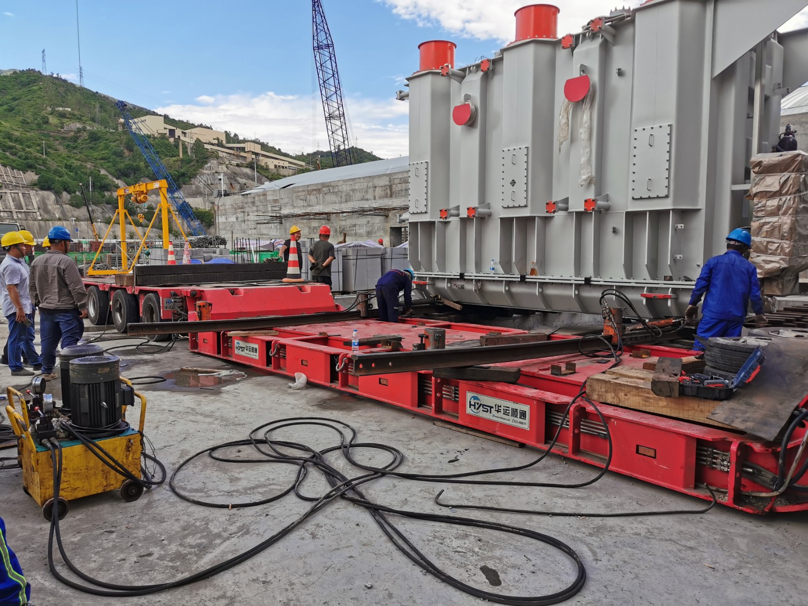【攀水電公司】銀江水電站1號主變壓器本體順利安裝就位
