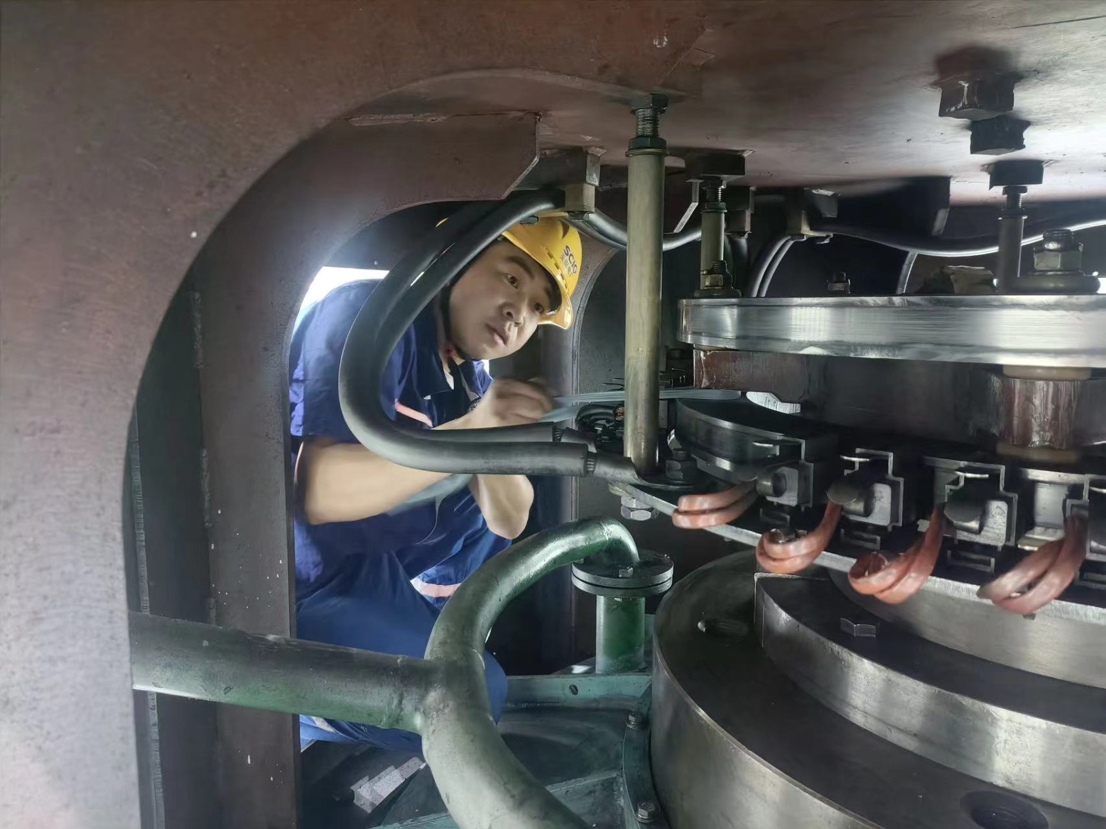 汛情發布后,他們主動參與電廠防汛“備戰”工作,扛起沙袋跑在最前面;汛期安全檢查,他們積極帶頭沖在前,細致排查每一處安全隱患,用點點滴滴的行動踐行共產黨員的初心使命。一次夜間消缺,收到消息的貢伍洛珠忙著奔赴現場,工作服都穿反了,雖然大家看到了都在笑,但這笑聲中卻飽含敬佩之意,夜晚的燈光把他們照得更加“高大”。