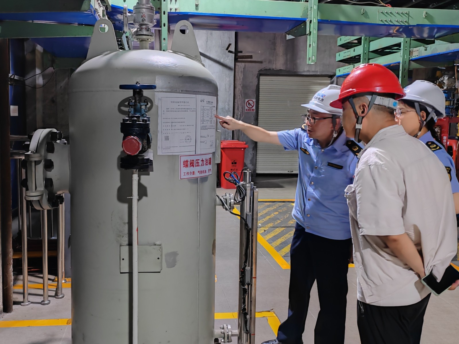 在公司職工食堂,檢查組逐一檢查了食堂操作間環境、炊具及餐具衛生狀況,了解工作餐加工制作流程,重點對食堂管理制度建設及菜品的質量安全把控情況進行了檢查。在鳳鳴橋車間生產一線,檢查組認真聽取關于公司基本情況、安全管理體系建設、特種設備安全操作規程完善、特種設備管理員、操作人員教育培訓、特種設備隱患排查治理長效機制等方面的情況匯報,現場查看橋式起重機、壓力容器等特種設備的運行情況,翻閱了特種設備檢查記錄、定檢校驗臺賬等工作資料。
