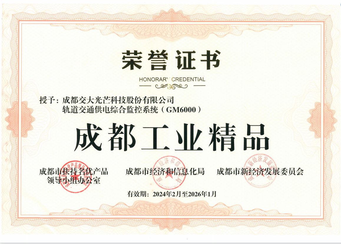 2024年,交大光芒繼續研發和推出市場認可、國家需要的新產品。在知識產權方面,公司上半年取得授權發明專利5項,累計47項,為公司的持續創新提供了堅實支撐。在產品方面,交大光芒軌道交通供電綜合監控系統(GM6000)獲評首批成都工業精品,該系統致力于實現軌道供電系統的智能化與自動化管理,進一步保障鐵路運輸的“安全、高效、綠色、經濟、智能”運行。交大光芒推出的“新一代軌道交通智能供電綜合監控場景”通過在成都地鐵十九號線的應用,榮獲成都市標桿場景三等獎,全面提升了軌道交通安全可靠和智能化水平,標桿示范效應明顯,進一步提升了城市樞紐的交通配套水平,助力成都打造“智慧化新名片”。