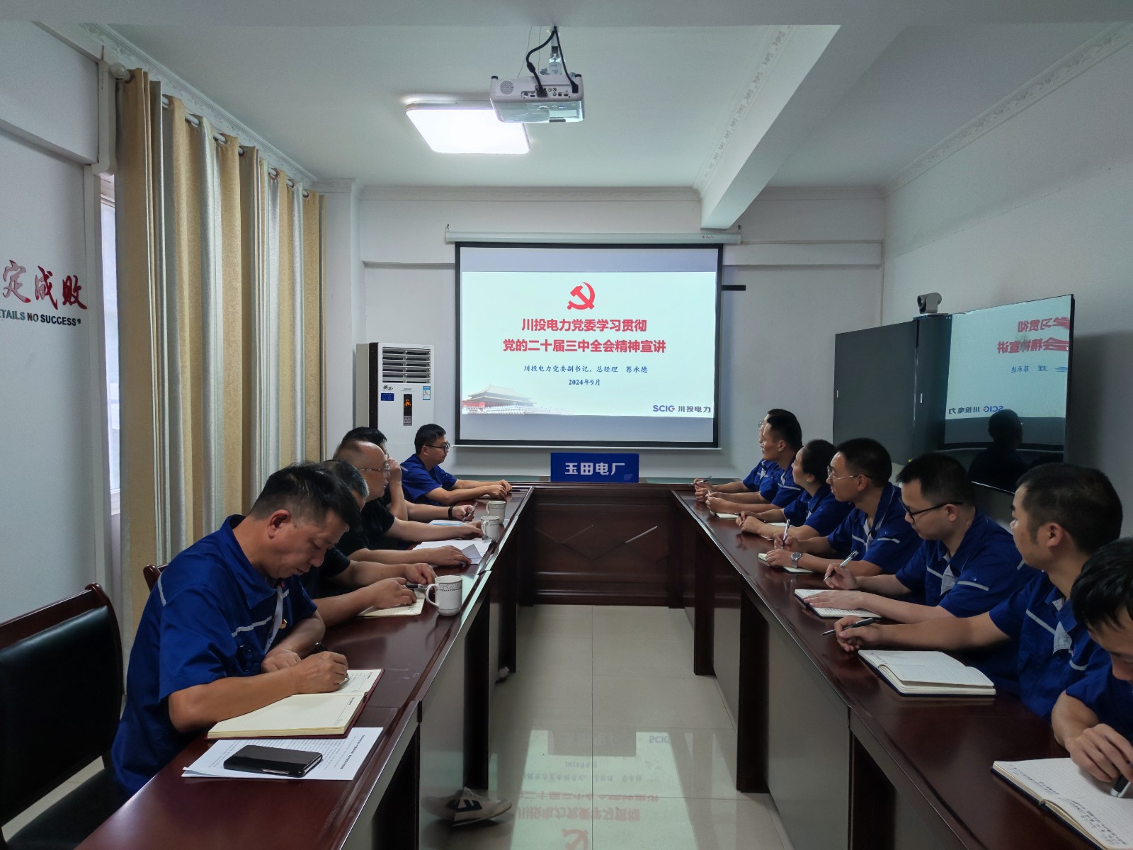 為深入學習貫徹黨的二十屆三中全會精神,推動全會精神落實落地,9月11日,川投電力黨委副書記、總經理蔡承德按照川投電力黨委統籌安排,赴玉田電廠黨支部開展黨的二十屆三中全會精神專題宣講,同時督導全會精神的學習宣傳貫徹工作。