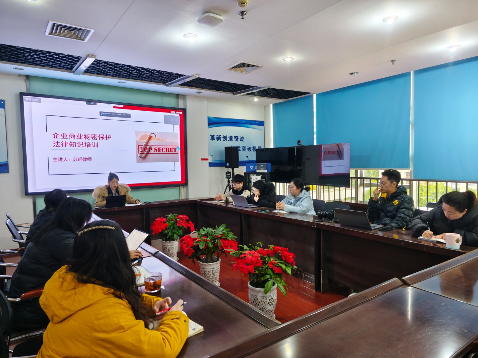 本次培訓(xùn)邀請公司常年法律顧問律師蘇瑤主講,她首先解讀憲法基本精神和特征,著重強(qiáng)調(diào)了民主、法治、人權(quán)三大核心價(jià)值,以及在推動(dòng)國家治理體系和治理能力現(xiàn)代化方面的重要作用。在商業(yè)秘密保護(hù)方面,律師從定義、范圍、保護(hù)措施等入手,緊密結(jié)合企業(yè)管理實(shí)際特點(diǎn),通過案例分析商業(yè)秘密泄露的常見途徑和后果,詳細(xì)介紹了如何建立完善商業(yè)秘密保護(hù)體系。在信息安全方面,律師結(jié)合《中華人民共和國網(wǎng)絡(luò)安全法》《中華人民共和國個(gè)人信息保護(hù)法》等法律法規(guī),從個(gè)人信息安全防護(hù)意識(shí)培養(yǎng)、辦公環(huán)境中信息安全實(shí)踐、網(wǎng)絡(luò)攻擊防范與應(yīng)急響應(yīng)策略、法律法規(guī)遵循與合規(guī)性要求進(jìn)行解析,對如何提高公司信息安全能力提出專業(yè)意見。
