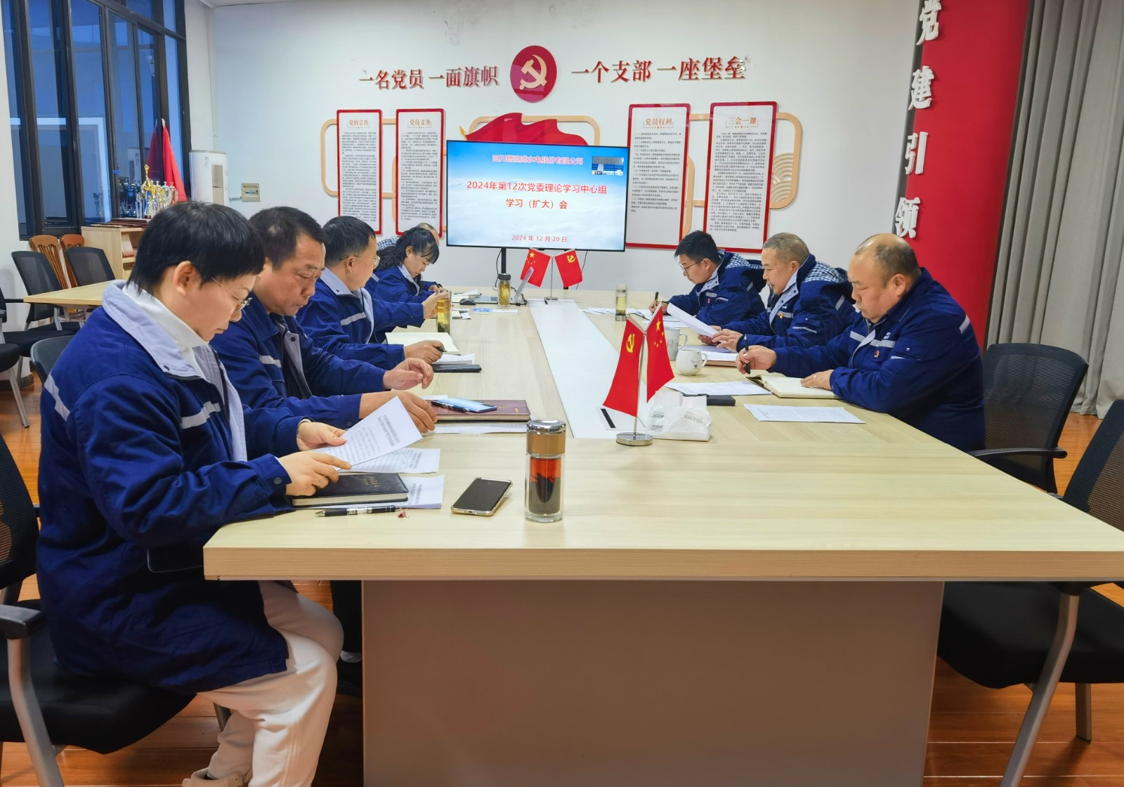 近日,槽漁灘公司黨委召開2024年第12次黨委理論學習中心組學習(擴大)會,專題傳達學習中央經濟工作會議精神,研究貫徹落實意見。槽漁灘公司黨委書記、董事長何光富主持會議并講話,槽漁灘公司黨委理論學習中心組成員及領導班子其他成員參加會議。