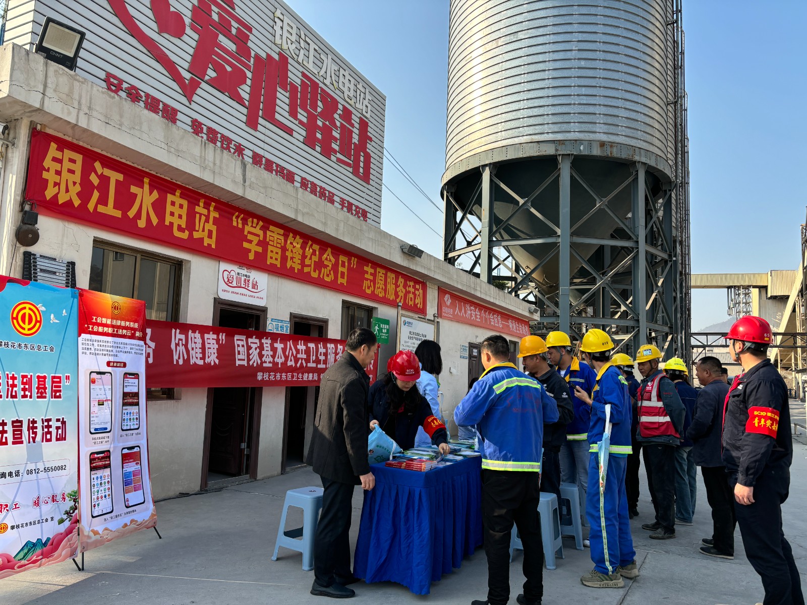 活動(dòng)現(xiàn)場,銀江工地愛心驛站變身“時(shí)尚沙龍”?,攀枝花市美容美發(fā)行業(yè)協(xié)會(huì)10名專業(yè)理發(fā)師現(xiàn)場打造“10分鐘快剪”服務(wù)圈,公司工會(huì)同步提供消毒濕巾、免洗洗手液,確保大家剪完發(fā),清清爽爽上工去;銀江鎮(zhèn)衛(wèi)生院創(chuàng)新推出“移動(dòng)健康管家”服務(wù),由4名醫(yī)務(wù)人員分別進(jìn)行血糖、血壓測(cè)量,為居住半年以上時(shí)間的居民建立健康檔案,簽約家庭醫(yī)生服務(wù),為慢性病患者建檔,更有中醫(yī)把脈問診開展健康咨詢解答等;安全健康知識(shí)“沉浸教學(xué)”?,多名志愿者為一線建設(shè)者開展中暑、熱射病、春季流感預(yù)防等職業(yè)健康治知識(shí)宣傳,發(fā)放健康教育宣傳資料,為職工發(fā)放《安全生產(chǎn)法》《四川省安全生產(chǎn)條例》《安全生產(chǎn)與勞動(dòng)保護(hù)職工學(xué)習(xí)手冊(cè)》《職業(yè)病防治宣傳手冊(cè)》《應(yīng)急逃生知識(shí)宣傳冊(cè)》等資料1000余份,將雷鋒精神轉(zhuǎn)化為常態(tài)化服務(wù),?贏得了一線職工的一致好評(píng)。?