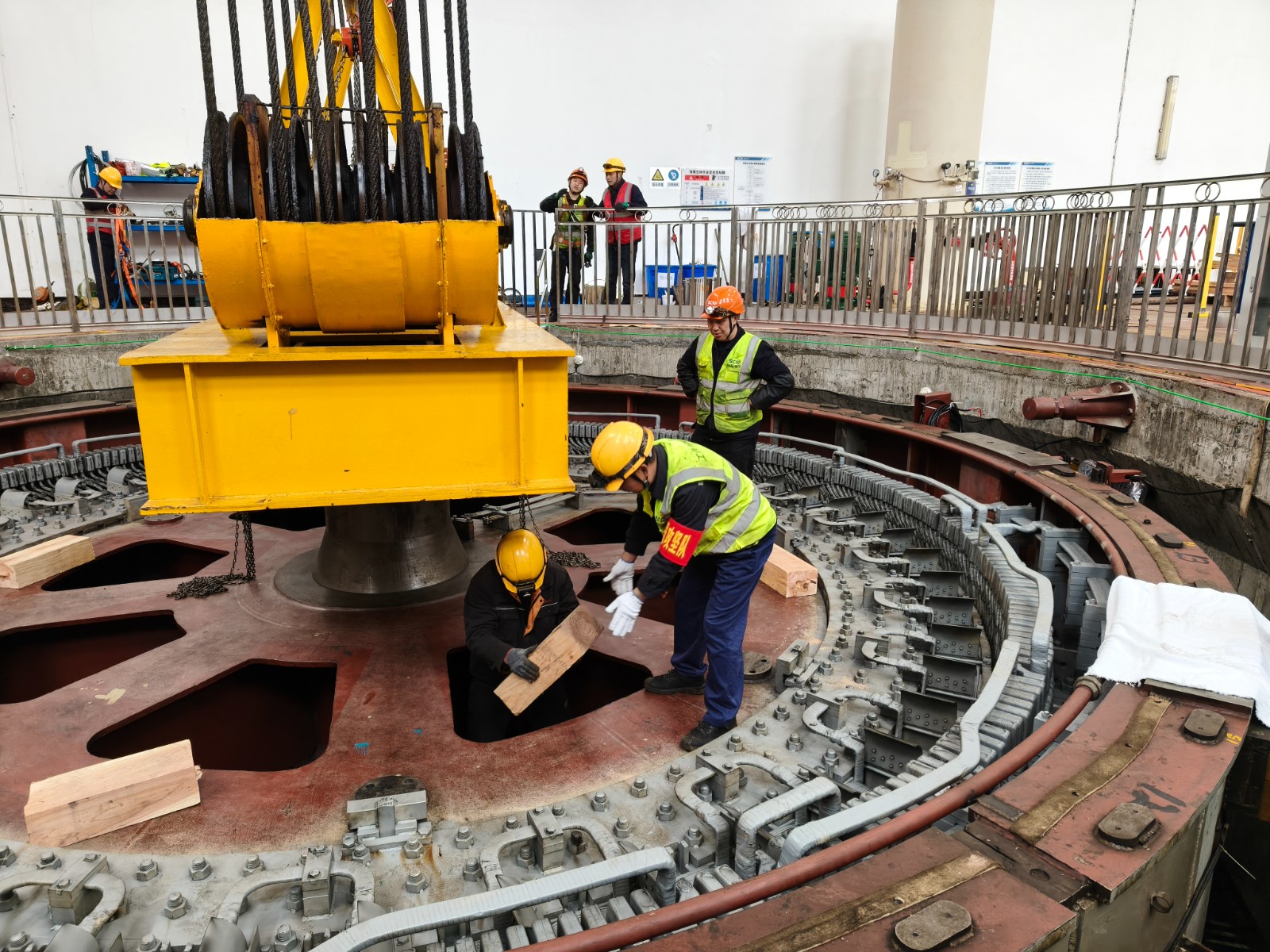 機組轉輪的成功吊裝,標志著機組A級檢修回裝工作正式開始,水輪機導水機構、水發聯軸回裝等后續工作將有序開展。檢修人員進一步緊密配合、科學組織、精細施工、嚴把質量關,圓滿完成機組檢修任務。