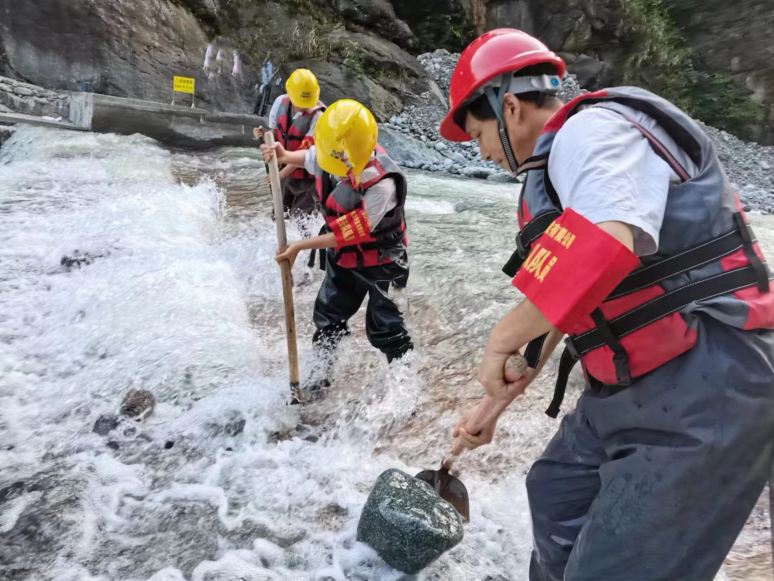 以黨員和骨干員工組成的天彭電力“星光”黨員先鋒隊,詮釋著責任和傳承。2022年9月1日,回龍溝上游爆發(fā)山洪那晚,沙金車間取水樞紐——底格欄柵壩整個壩面三分之一的鋼結(jié)構(gòu)、部分混凝土被破壞,二分之一壩面嚴重淤積。險情導致沙金車間引水全部中斷,公司整個發(fā)電來水量減少三分之一,不僅影響機組發(fā)電,彭州及周邊40萬人飲用水安全也將亮起紅燈。秉承“搶險不冒險”的原則,在強降雨停后的第一時間,沙金車間迅速出動搶修人員,先鋒隊隊員們帶頭沖鋒在前,展開了一場保發(fā)保供保民生的搶險“攻堅戰(zhàn)”。在車間主任周繼良的帶領下,大家火速集結(jié),緊急投入搶險工作。僅用時23小時、比原計劃提前2天,成功搶通供水生命線。