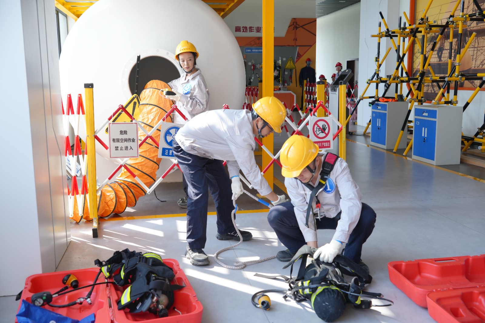 開幕式后,比賽緊扣“人人講安全、個個會應(yīng)急”,設(shè)置了“火災(zāi)逃生”和“有限空間救援”兩個極具挑戰(zhàn)性的項目。在火災(zāi)逃生項目中,模擬火災(zāi)現(xiàn)場煙霧彌漫,警報聲尖銳刺耳,參賽隊員們迅速反應(yīng),有條不紊地撤離模擬火災(zāi)現(xiàn)場。有限空間救援項目更是考驗重重,隊員們熟練操作,分工明確、密切配合,充分展現(xiàn)了電力職工的專業(yè)素養(yǎng)、應(yīng)急處置能力和團(tuán)隊協(xié)作能力。