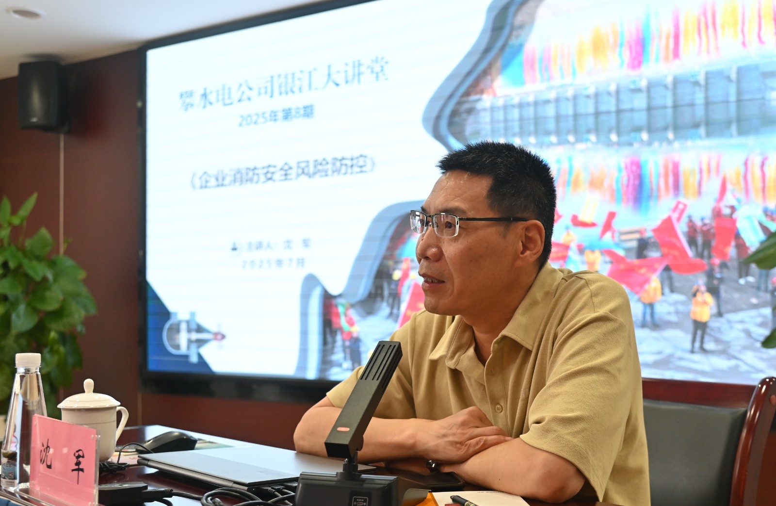 為切實(shí)提升全員消防應(yīng)急處置能力,筑牢企業(yè)安全防線,7月27日,攀水電公司舉辦2025年第8期“銀江大講堂”,特邀四川省消防工作專家?guī)熨Y深專家、高級(jí)工程師沈軍講授企業(yè)消防安全風(fēng)險(xiǎn)防控知識(shí),四川省消防救援總隊(duì)攀枝花市支隊(duì)周立波政委出席指導(dǎo),公司領(lǐng)導(dǎo)、各部門員工、參建單位代表共計(jì)60余人參訓(xùn)。